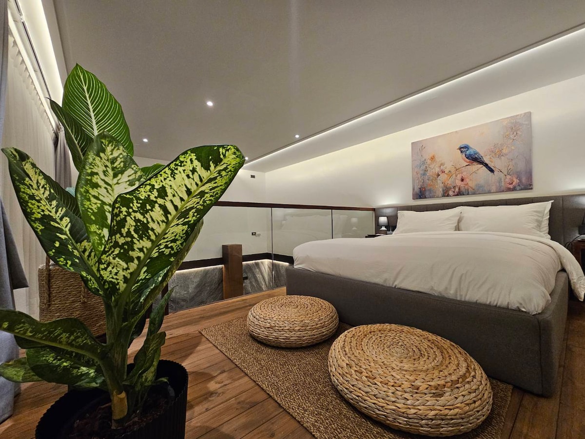 This stylish split-level space features a cozy elevated bedroom overlooking the living area, warm wood finishes, and soft ambient lighting. Enjoy natural light, a compact kitchen, and a comfortable dining corner. Just 350 meters from BTS Punnawithi. Easy city access, peaceful stay, surrounded by local cafés, street food, and everyday conveniences, you’ll experience authentic Bangkok living while staying in a calm, refined retreat.🐘🐦