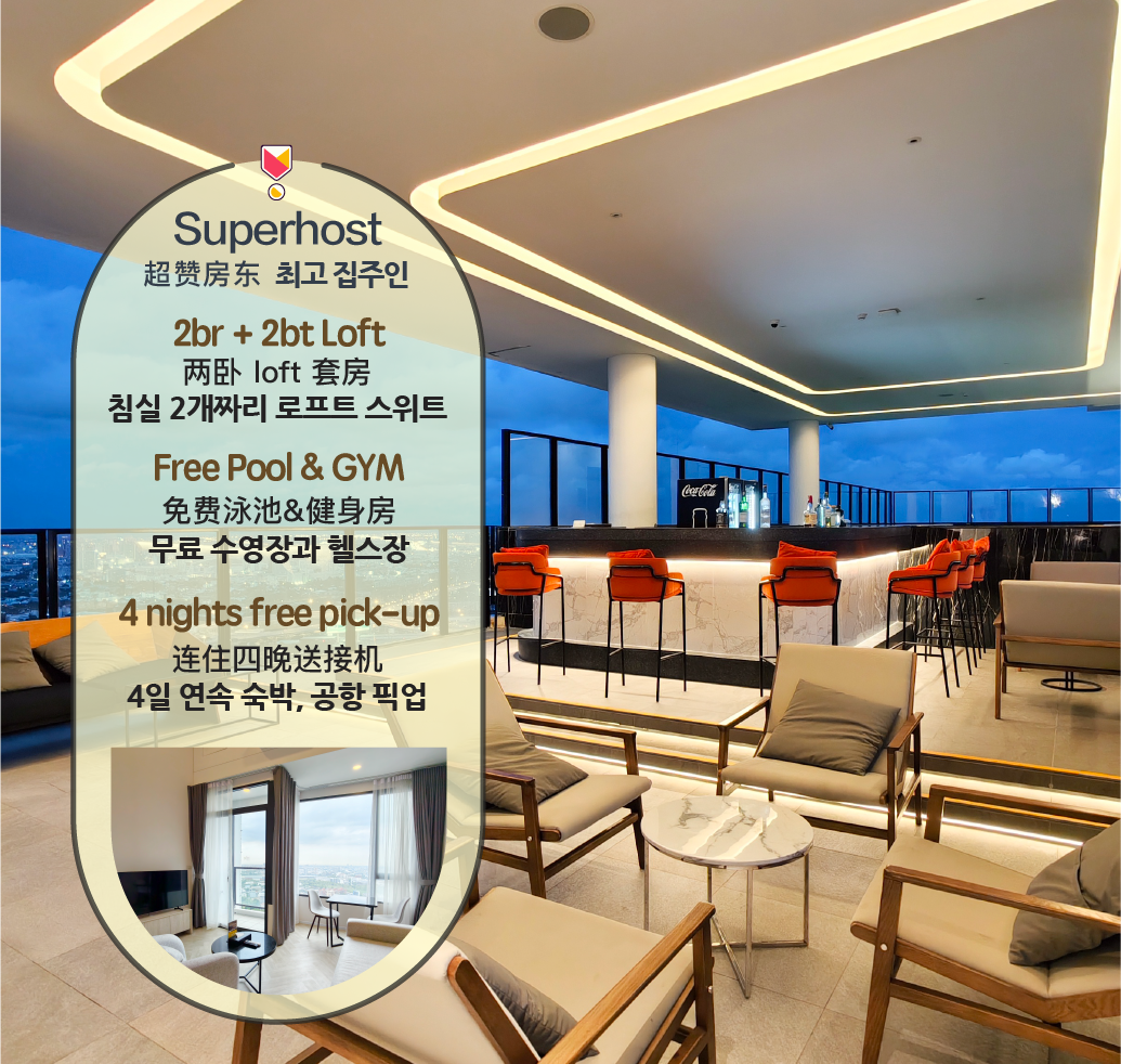 Rama9 两卧复式带浴缸LOFT2024/住5人/屋顶泳池/近RCA/近火车夜市/近tonglor