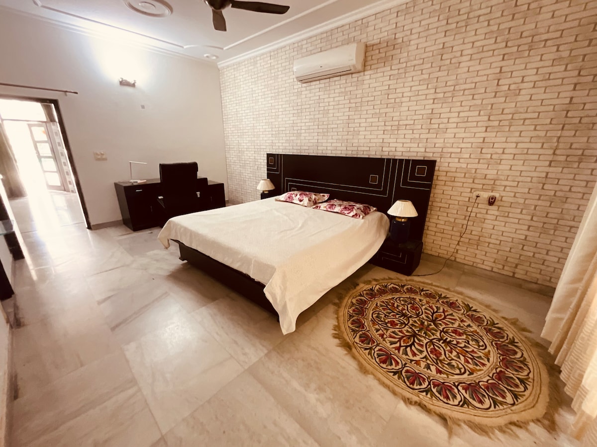 Experience regal comfort in our lavish Airbnb located in the heart of Panchkula. Enjoy the opulence of a royal Maharaja bed, a modern modular kitchen with a side-by-side-door fridge, AC in all bedrooms, and a patio area with the latest amenities. Just a 2-minute drive from the Delhi-Shimla highway, and close to Chandigarh city. Book now for a luxurious Getaway!