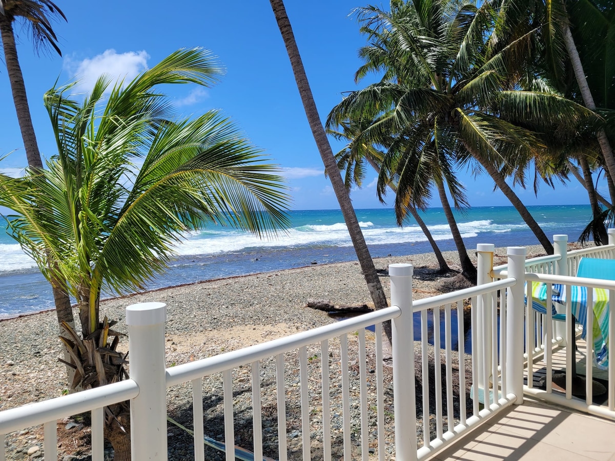 Kick off your shoes & relax in our newly renovated beachfront villa, where you will be instantly transported to paradise! Lounge beneath the palm trees in one of our hammocks and melt your worries away while taking in the beautiful vistas and fresh ocean breeze. This beachfront property offers direct access to a peaceful, secluded beach, a community pool, tennis, and basketball courts, swings, a pay laundry room, and gated access. All rooms in our villa are equipped with air conditioning