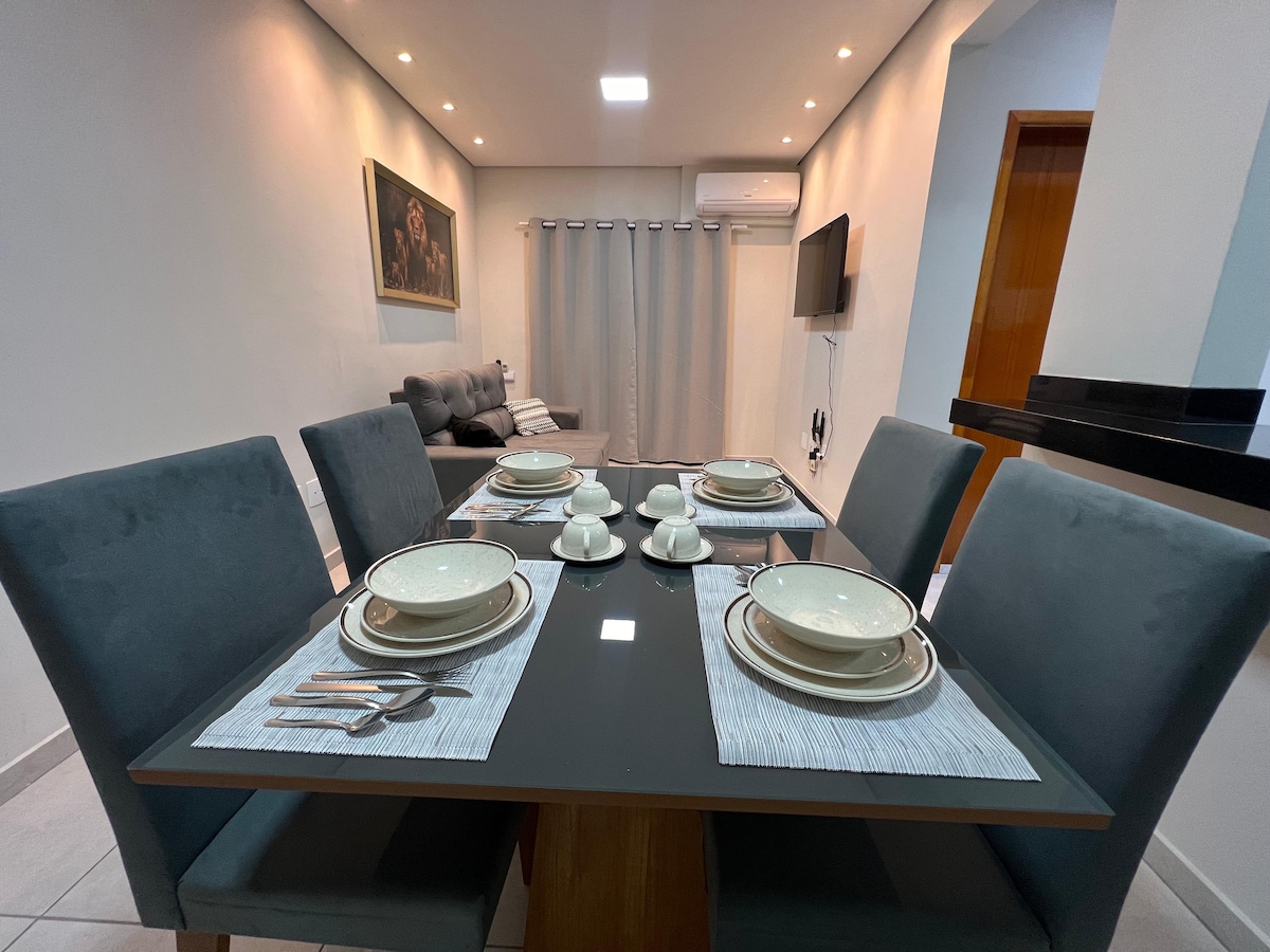 Relaxe com toda a família nesta acomodação tranquila. Apartamento recém inaugurado com tudo que vc precisa para passar dias agradáveis. Apartamento no Primeiro andar prédio não tem elevador. Cozinha completa, ar condicionado nos quartos e sala, oferecemos roupa de cama e banho. Padaria e supermercado próximo.
