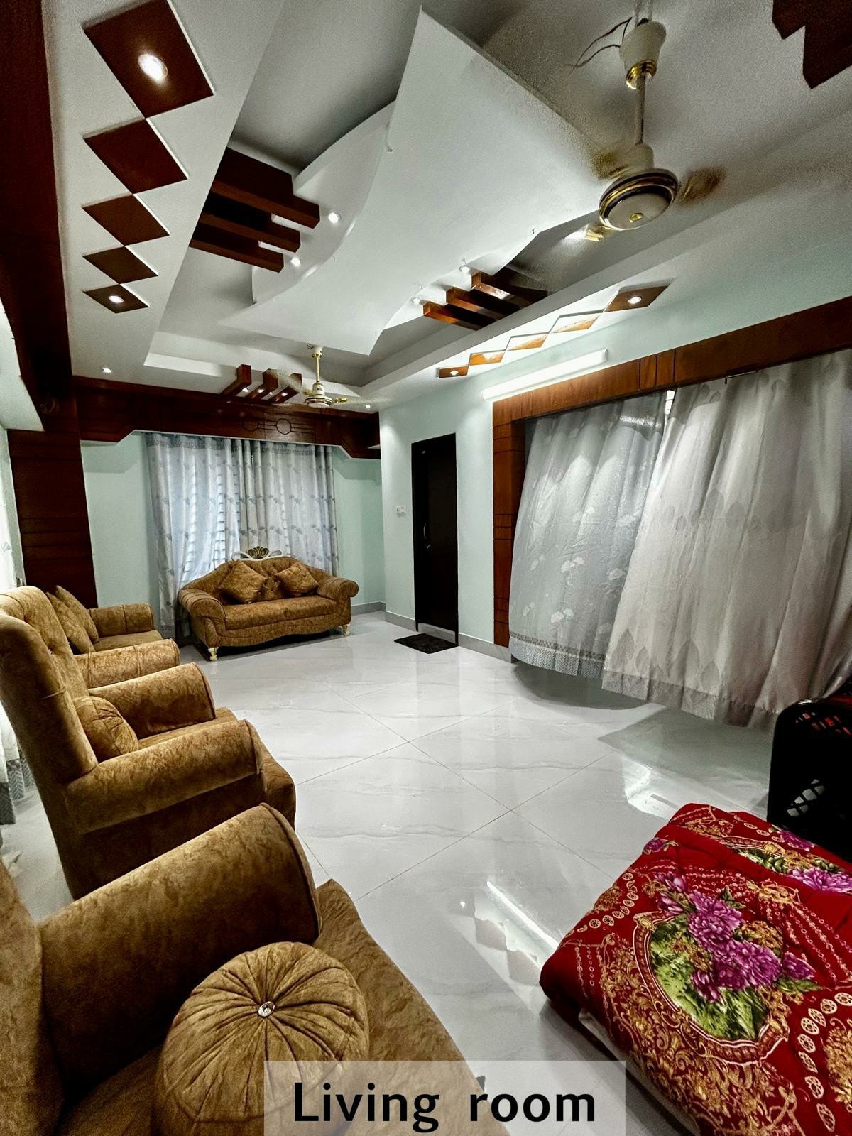 Spacious apartment at the heart of Chittagong. Supermarket, restaurants and transportation only a 5 minutes walk away. Two relaxing air conditioned bedrooms with attached balcony and bathroom each. Fully equipped kitchen and dining for enjoying family meals. Caretaker available next door for any assitance. Free parking, 24/7 security, extra guest room, hot water, fridge, gas stove and all basic amenities available!
