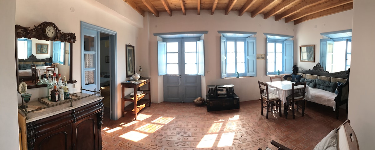 Το παλιό ξυλουργείο και το σιδηρουργείο του Παππού Γιάννη, ενώθηκαν με σεβασμό και έγιναν ένα παραδοσιακό νησιωτικό σπίτι, κρατώντας όσα περισσότερα στοιχεία από το παρελθόν του οικήματος. Βρισκεται 7 περίπου λεπτά από το κέντρο της Σκάλας και από την κοντινότερη παραλία. Κοντά στο σπίτι υπάρχει αρτοποιείο μανάβικο και σούπερ μάρκετ. Η παραλία Μελόι είναι στα 2 λεπτά μακριά με το Αυτοκίνητο και το Αγριολιβαδι στα 6.