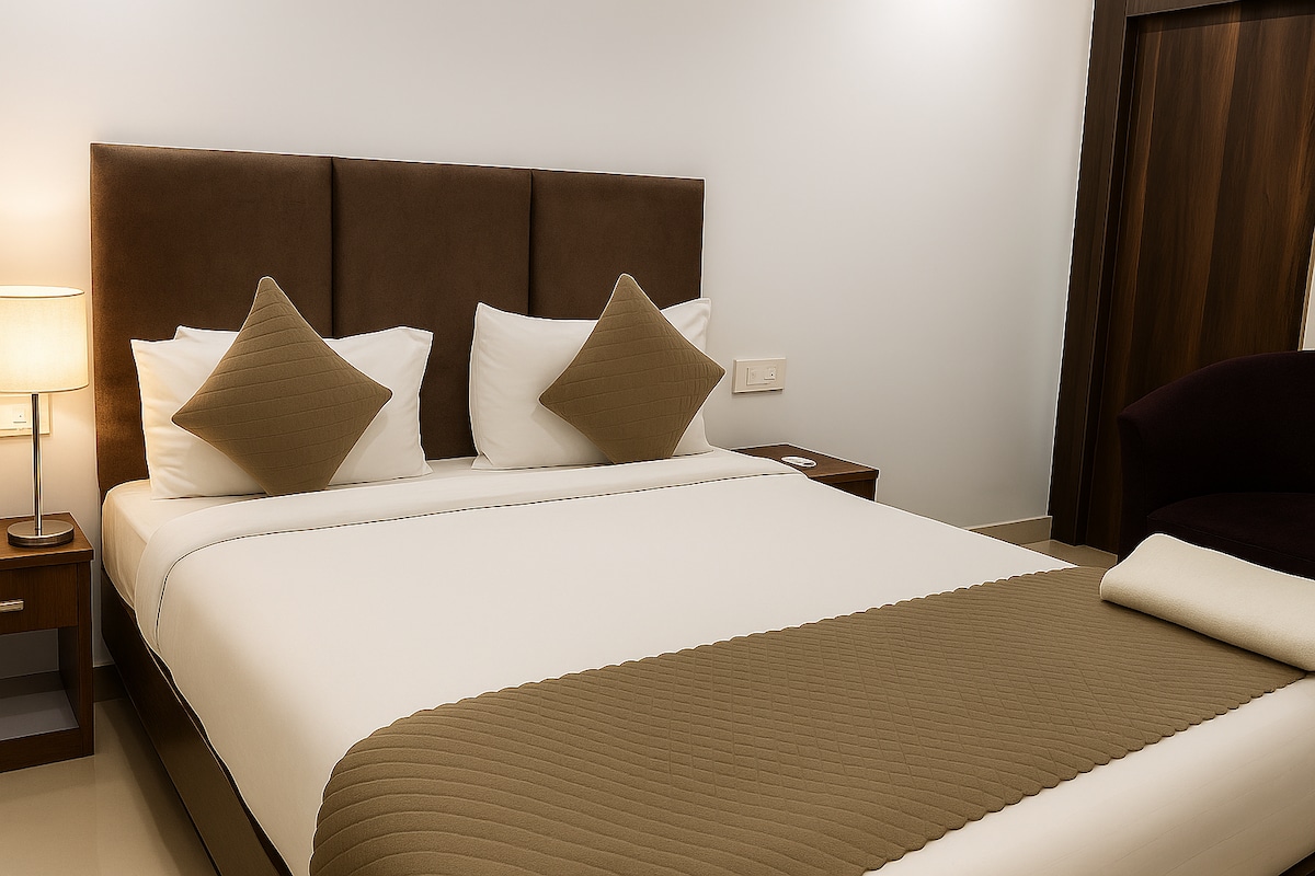 🤝Have fun with the whole family at this stylish place. ■ Spacious 2BHK apartment. 1.Each bedroom has its own washroom 2.Just 10 minutes to the airport 3. 20 minutes from the railway station 4.Located in midtown, easy access to main attractions 5. Ola & Uber available nearby 6.RPS Food delivery from Zomato & Swiggy at your doorstep 7. Grocery stores within walking distance 8. 24/7 staff available on-site for any assistance 9. Private generators for power cuts 10. Free parking.