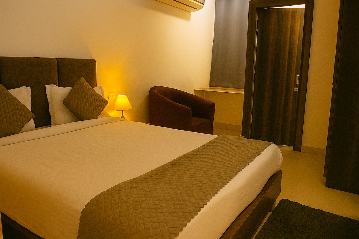 🏡 Spacious 2BHK apartment with AC in all rooms 🚿 Each bedroom has its own washroom ✈️ Just 15 minutes to the airport 🚉 30 minutes from the railway station 🏙️ Located in midtown, easy access to main attractions 🚕 Ola & Uber available nearby 🍽️ Food delivery from Zomato & Swiggy at your doorstep 🛒 Grocery stores within walking distance 👥 24/7 staff available on-site for any assistance 🎛️Private generators for power cuts 🚙Free parking.
