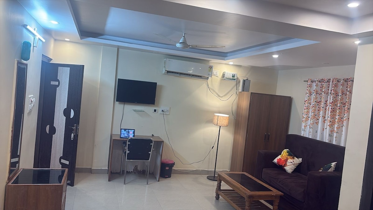 ■ Spacious 2BHK apartment. 1.Each bedroom has its own washroom 2.Just 10 minutes to the airport 3. 20 minutes from the railway station 4.Located in midtown, easy access to main attractions 5. Ola & Uber available nearby 6.RPS Food delivery from Zomato & Swiggy at your doorstep 7. Grocery stores within walking distance 8. 24/7 staff available on-site for any assistance 9. Private generators for power cuts 10. Free parking.