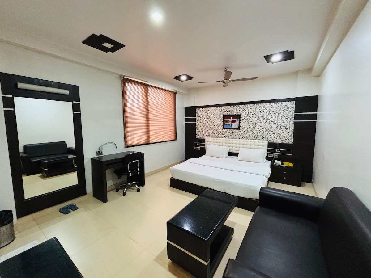 Situated in Center of Patna , 24 hours guarded gate and completely safe . The room is newly renovated , with free wifi, AC , and a Desk .
