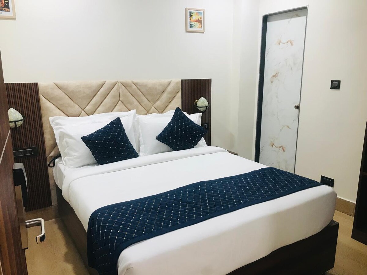 This stylish place is close to must-see destinations. Beautiful rooms in Budget at Prime location with all premium amenities and service. Good place to visit with friends and family. # Couple friendly # Parking for car & Bike # In room dining available # Luxury rooms # wifi # AC # Spacious and ventilated rooms. # Lift # Tea kit # shower kit # Premium Linen set # Roof top sitting area # Customised decoration for rooms
