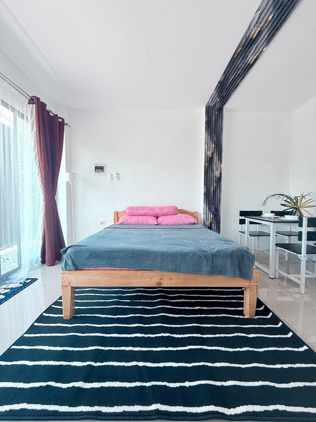 This stylish place to stay is perfect for couples or small family. The rate covers the entire space of 2nd floor which is a studio with 1 bed and sofa bed, 1 bathroom, kitchen, and a terrace. We can also provide extra beds if needed. We have a caretaker 24/7 to cater your needs.