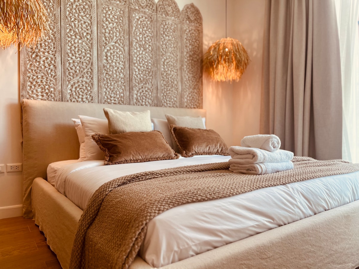 Welcome to your cozy home away from home. This modern retreat is designed for comfort and ease, with a relaxing living area, a well-equipped kitchen for simple meals, and everything you need to unwind. Sleep soundly in one king-size bed and one queen-size bed, perfect after a day exploring. Enjoy quiet moments in the outdoor seating area, or take a gentle 15-minute walk to the beach, local bars, restaurants, and massage spots. A comfortable, welcoming space to truly relax and feel at home.