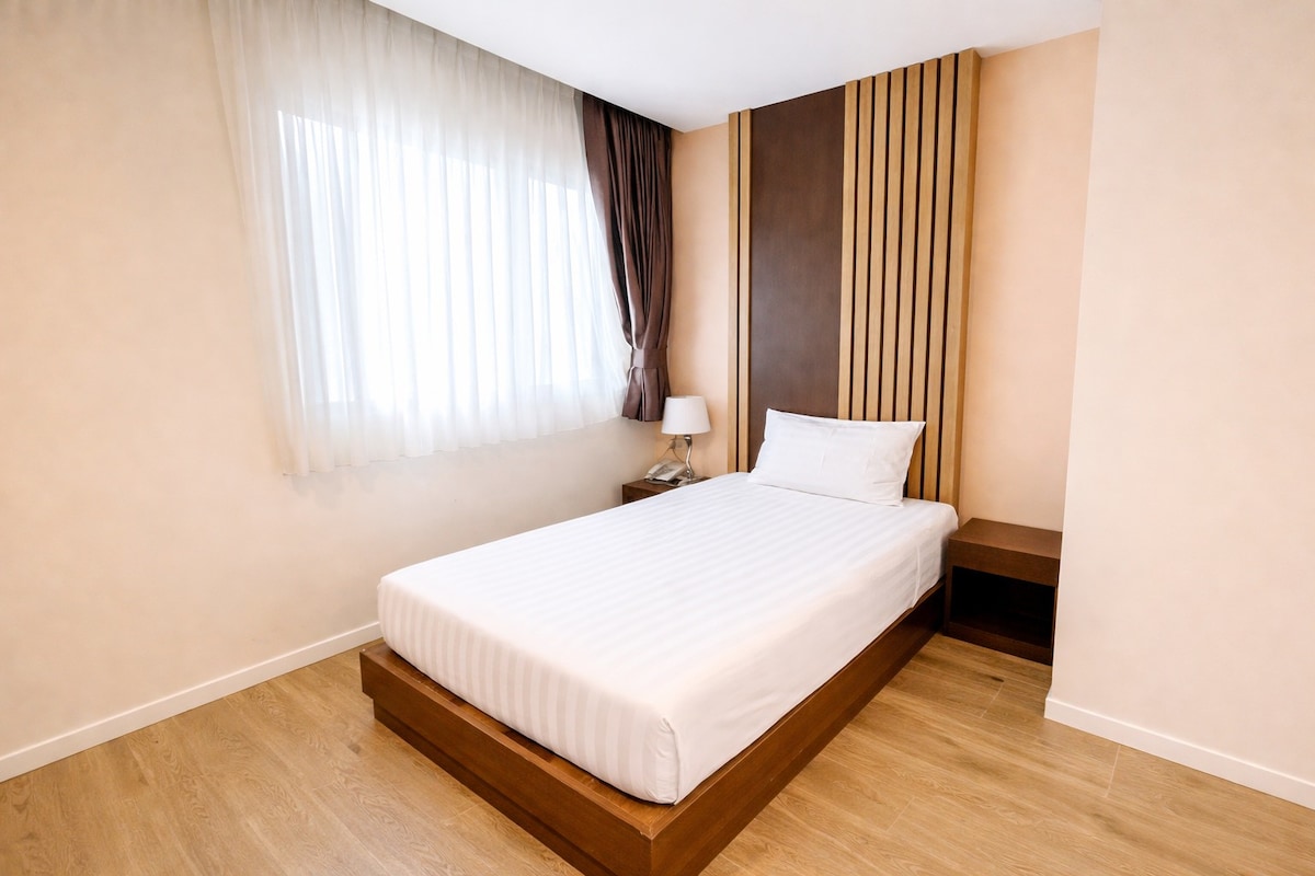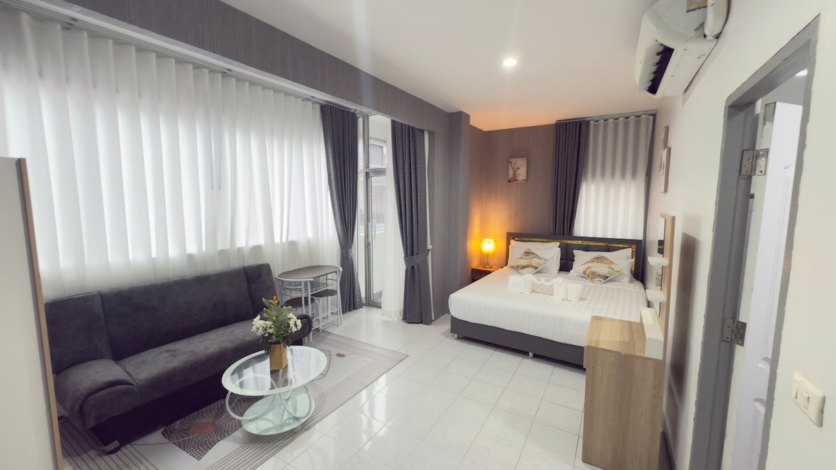 Enjoy a comfortable and spacious stay in our Deluxe Balcony Room, located just a short walking distance to Jungceylon Shopping Mall, Bangla Road, and Patong Beach. The area is surrounded by many restaurants, bars, and local shops. The room features a cozy king-size bed, a standard-size fridge, air conditioning, flat-screen TV, hot shower, and free Wi-Fi and a private balcony. Clean, bright, and peaceful, this room offers great comfort and convenience in one of Patong’s best locations.