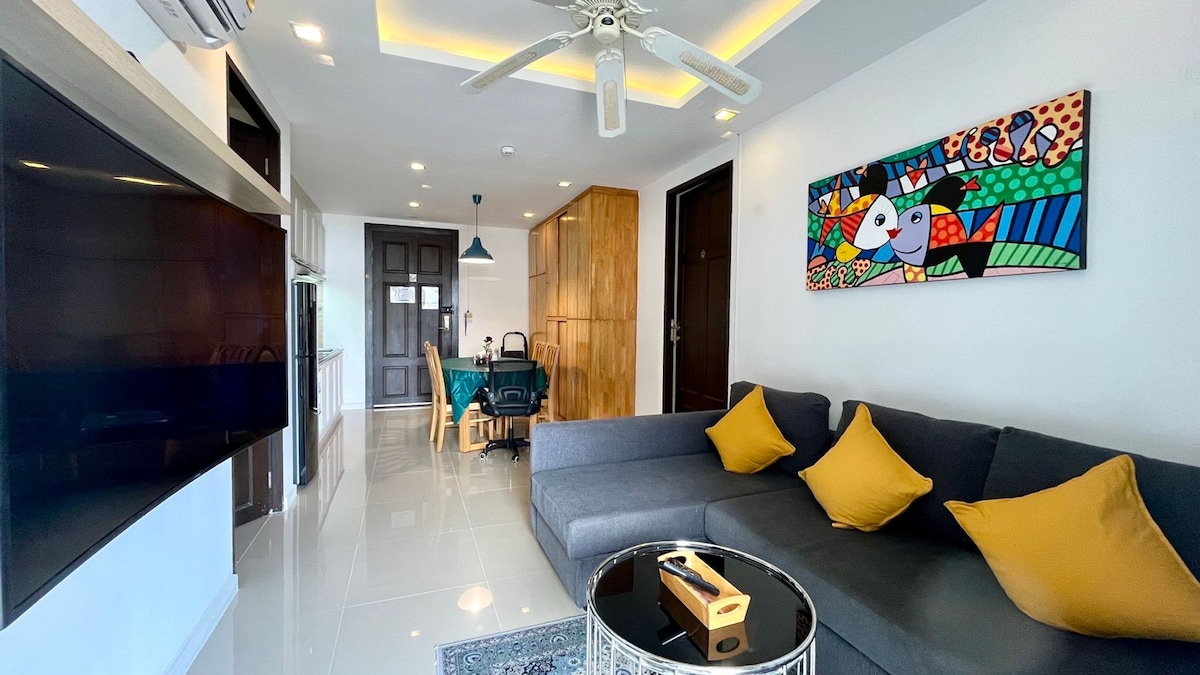 ✨ Only 800m to Patong beach - where lively restaurants, shows, shopping mall, bars and thrilling nightlife await ✨ Enjoy a pool-view balcony in this freshly furnished two-bedroom apartment—the only one with a sofa bed, easily sleeping up to five ✨ Price Includes ALL utilities: ✔ NO hidden costs – Electricity, Water, WiFi, 100% covered ✔ Free airport pick-up one time: For minimum 3 nights booking ✔ Free access to two Swimming Pools (groundfloor & rooftop infinity pool), a Fitness Gym, and Parking