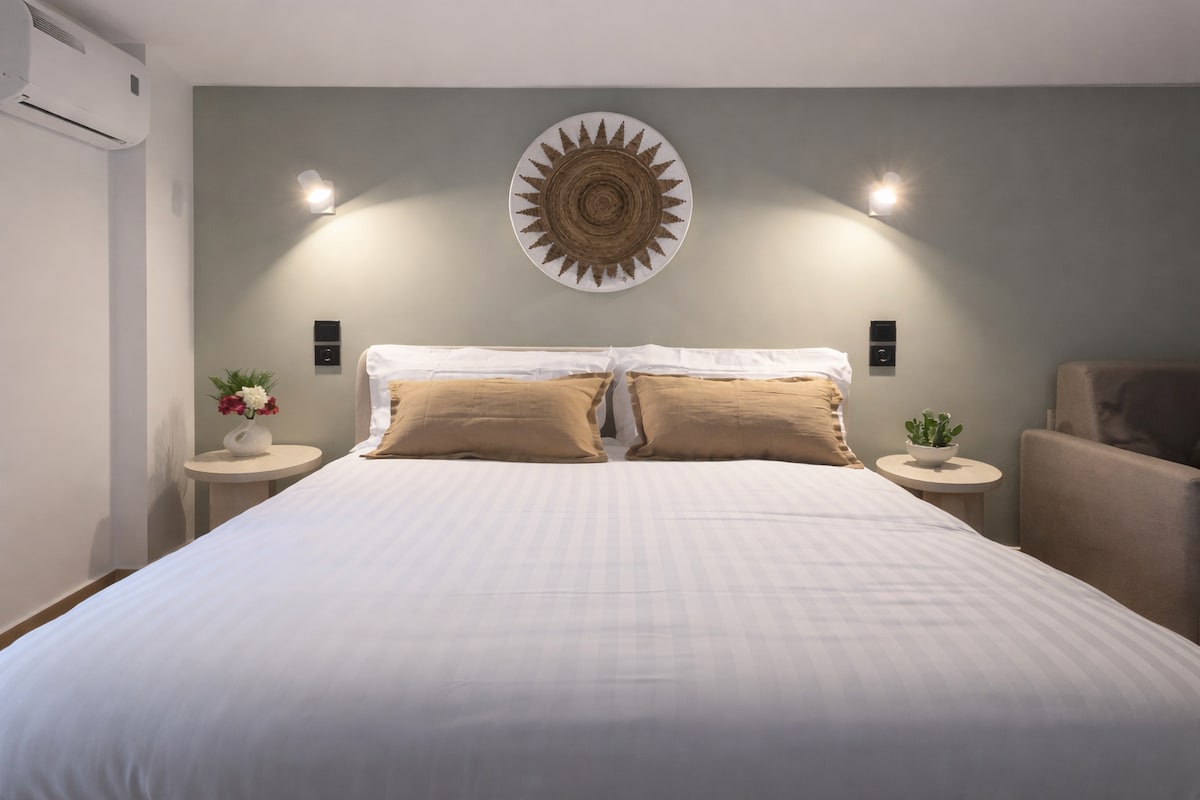 Άνετο δυάρι με ανεξάρτητη είσοδο και μεγάλη βεράντα, σε ήσυχη γειτονιά με εύκολο parking, 10 λεπτά με τα πόδια από την καρδιά της πόλης και δίπλα σε δημόσια συγκοινωνία. Έχει κρεβατοκάμαρα με διπλό κρεβάτι και μεγάλη ντουλάπα, κουζίνα-καθιστικό με καναπέ-διπλό κρεβάτι, μπάνιο και βεράντα. Οι χώροι έχουν διακοσμηθεί με φωτογραφίες και ζωγραφισμένα στο χέρι κεραμεικά, ενώ έχουν απευθείας πρόσβαση στη βεράντα με τις αναπαυτικές πολυθρόνες απ’ όπου θα χαρείτε την ηρεμία ενός κήπου με πορτοκαλιές.