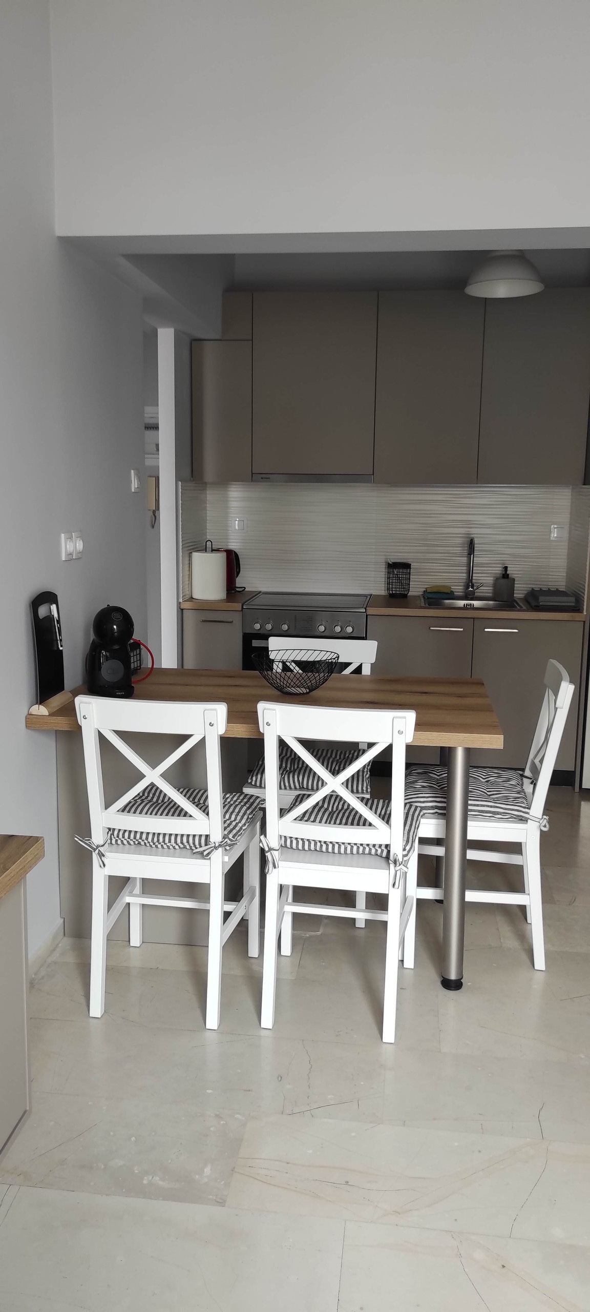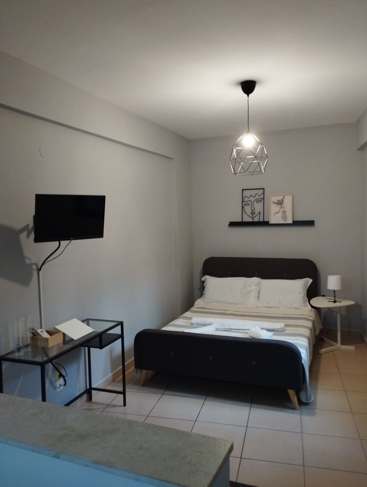 A beautiful fully renovated 1st floor condo (30 sqm) in a peaceful neighborhood at Hagia Sophia district in Patras. With 1 double bed and a sofa turning to double bed, this 1-room apartment offers an ideal choice for single visitors, couples or families with small kids. Very well served by public transport both for the center of the city (about 1.8 Km away) and Rion / University of Patras (about 5.5 Km away). Free parking available in the vicinity of the apartment.