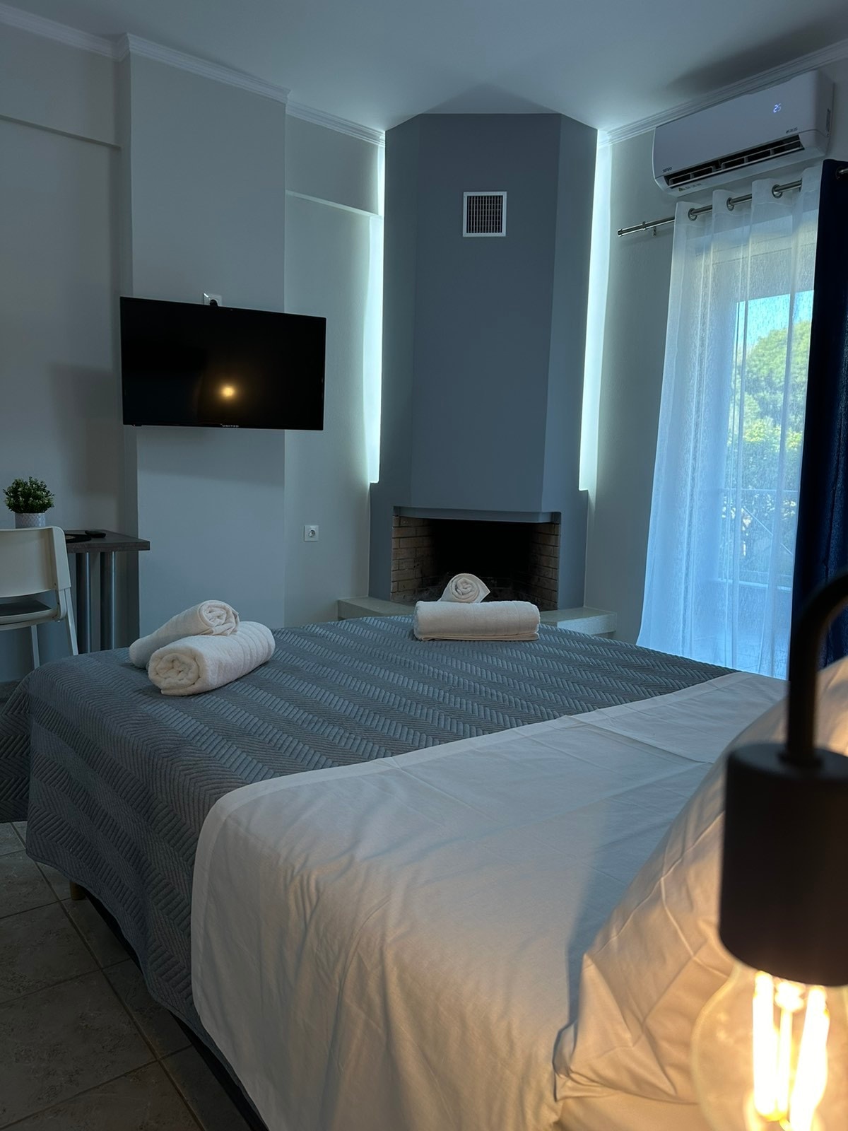 A cozy retreat blending rustic stone walls with modern comforts, this Airbnb is just 10 minutes from the city center and the beach, and only 5 minutes by car from the archaeological museum—yet it remains exceptionally quiet. It is also just a 10-minute walk from public transport.Enjoy panoramic terrace views of the glittering sea, vibrant cityscape, and the iconic Rio-Antirrio bridge. Inside, you'll find a welcoming fireplace and a peaceful atmosphere—perfect for relaxing after a day in town."