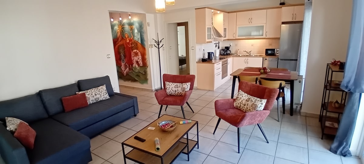 Σαν μια ανάσα γαλήνης μέσα στην πόλη, αυτό το μοντέρνο διαμέρισμα ενός σας καλωσορίζει με μεσογειακή αύρα και φυσικό φως που λούζει κάθε γωνιά του χώρου. Βρίσκεται σε μια πανέμορφη γειτονιά της Πάτρας στους πρόποδες του Δασυλλίου, δημιουργώντας ένα καταφύγιο για όσους αναζητούν ηρεμία, έμπνευση και αυθεντική φιλοξενία. Το διαμέρισμα βρίσκεται μόλις μερικά βήματα από καφετέριες, σούπερ μάρκετ, φαρμακείο κτλ. Η κεντρική πλατεία της πόλης βρίσκεται μόλις 10 λεπτά με τα πόδια μακριά.