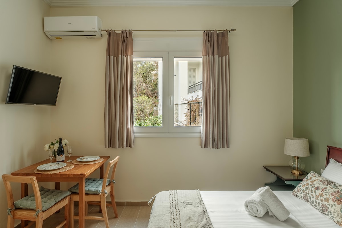 Live like a local at Retropolitan Privé! Welcome to a bright and airy deluxe apartment in the heart of Patras – perfect for couples or solo travelers. Featuring a comfy double bed, a shower cabin, and colorful retro-inspired décor, this space offers the perfect spot to relax. Located right across from the main bus and train stations, you're just steps away from exploring Patras on foot. Enjoy the vibrant nightlife, bustling cafés, and lively atmosphere – all within walking distance.
