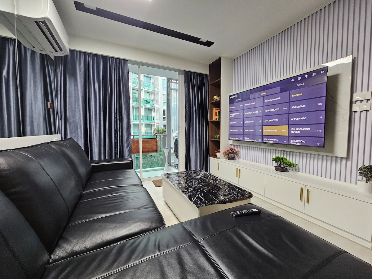時尚海景公寓 ~ 芭達雅市中心絕佳位置! 清晨,讓大海朝陽喚醒您!這間現代化風格的海景公寓,距芭達雅海灘僅300公尺(步行約5分鐘),坐落市中心,面對中央購物中心,異國美食餐廳和夜生活場所等,皆近在咫尺,讓您的假期既悠閒又充滿樂趣。 • 客房亮點: ✔ 時尚海景一房 - 遠眺泰國灣的日出、夕陽美景。 ✔ 天際無邊泳池 - 飽覽暹邏海灣及芭達雅海灘全景。 ✔ 絕佳海濱地點 - 輕鬆步行至海灘、中央購物中心和步行街等。 ✔ 生活設施齊全 - 廚房、廚具、洗衣機,拎包入住、免煩惱。 芭達雅是泰國最具代表性的海濱度假勝地之一,以綿長沙灘、水上活動和豐富夜生活聞名。無論您是想探索城市還是純粹放鬆,這間公寓都是理想之選。 • 入住這間位處中心地段的房源,享受芭達雅海景公寓的時尚品味!