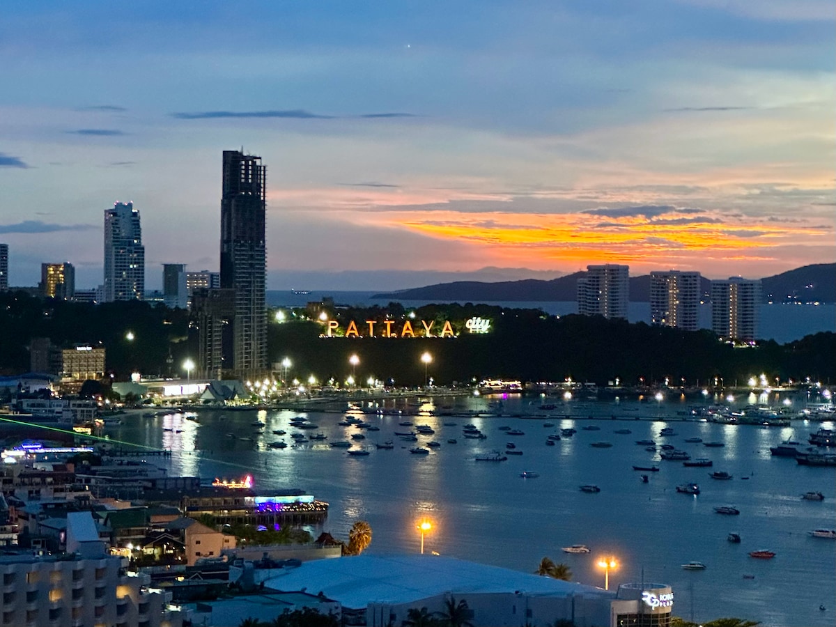 "Beautiful Condo and Location is excellent. The view from the balcony in the morning was breathtaking out into the ocean" - Jason ☆ Airbnb Superhost since 2015 ❤ Stunning Sea & City view ❤ Smart TV ❤ Fast Internet ❤ 1 bedroom / studio convertible ❤ Full equipped ❤ Quiet & Relaxing ❤ Sky pool and Jacuzzi ☆ Mini mart downstairs ☆ Beach access (1 min walk) ☆ Pratumnak Night Market (10 min. walk) ☆ Walking Street & Bali Hai Pier (10 min.)