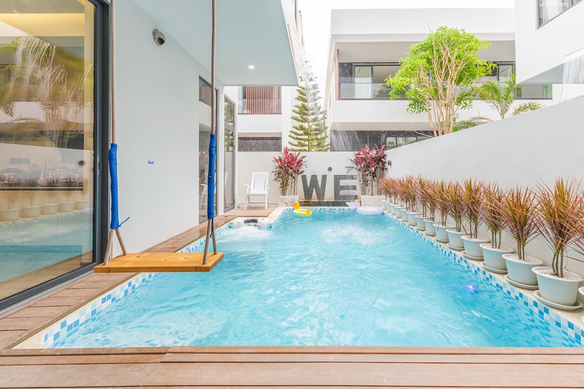 房源概况 这栋独栋泳池别墅位于芭提雅中天区域,设有5卧6卫,每间卧室均配备独立卫生间,智能马桶,保障客人私密性。别墅全新装修,空间宽敞明亮,配有独立庭院与私人泳池,可舒适容纳 10-12人,非常适合家庭、朋友聚会或团体度假。 地理位置 别墅距离中天海滩仅100米,步行即可到达。小区周边 300 米内拥有餐厅、咖啡店、药店和便利店,生活便利。驾车可快速抵达主要景点: • 3分钟:中天夜市 • 10分钟:Central 百货、唐人街、Terminal 21、79 成人秀 • 10分钟:步行街、格兰岛码头、美人鱼网红餐厅 无论是海滩、购物还是夜生活,都能轻松安排。 房屋亮点 • 5间卧室均为独立套房,配有智能窗帘 • 6个卫生间,多人入住也不拥挤 • 私人泳池与花园,定期维护 • 超大客厅和餐厅,适合聚餐和休闲 • 全屋空调、高速 Wi-Fi • 社区安静、安全,适合家庭入住 管家服务 提供 24小时管家服务,协助入住指引、路线导航 可选增值服务 提供曼谷/芭提雅接送机、包车服务、租车、包船出海、景点及秀场门票预订、私厨上门、上门烧烤、翻译等服务,让假期更加便利和轻松。