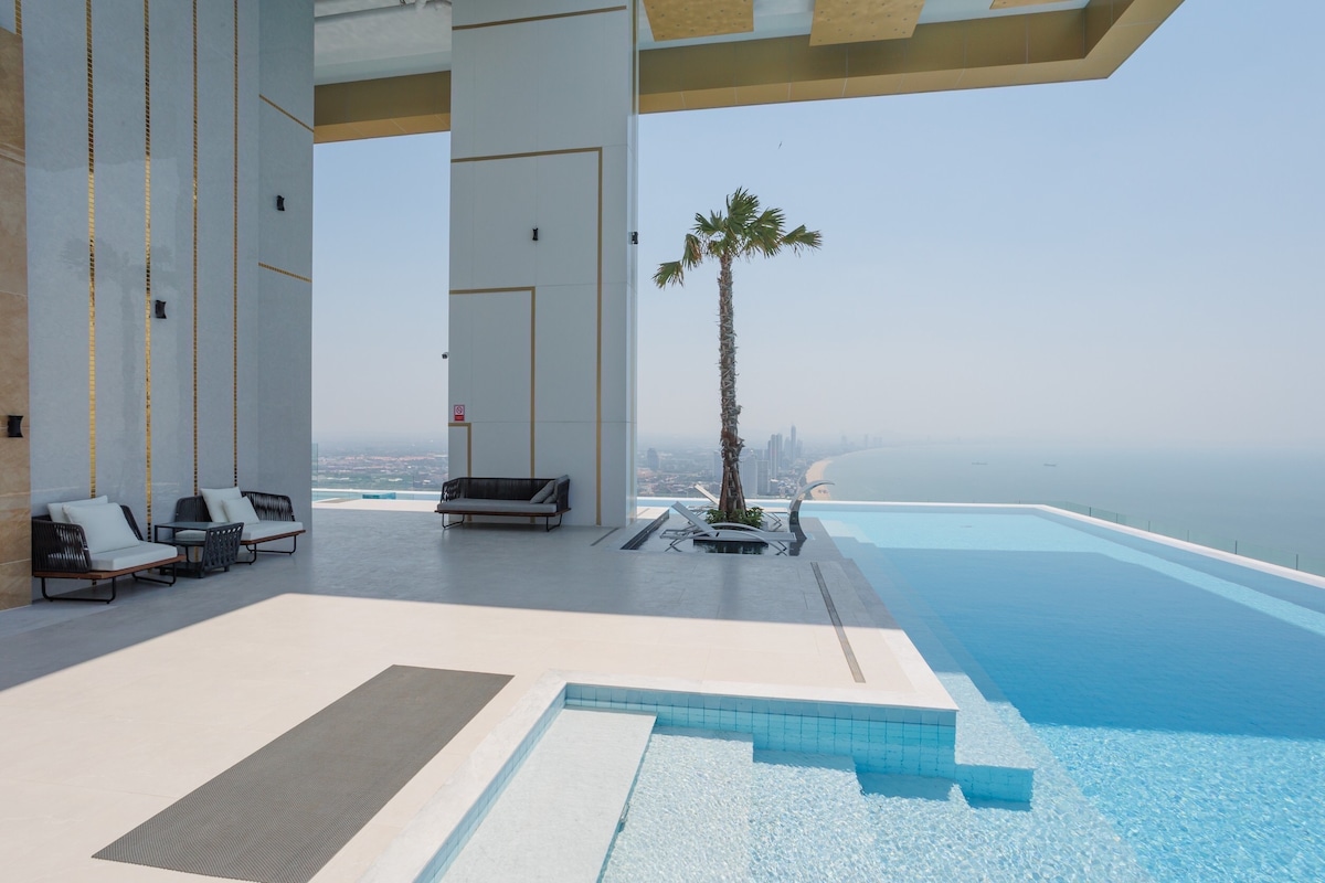 此处梦之居所位于帕山脚下,位置独一无二。从30层的两居室的各个房间向外望去,都可以看见令人惊叹的海景🌊与山景⛰️。迷人的芭提雅黄金海岸线与帕山顶的大佛和皇宫都在最恰到好处的视野范围内。全新的房子采用了最优质的家具和电器进行装修,旨在营造一个即舒服温暖又明亮现代的居住氛围。 小区内设有优雅的咖啡馆和便利店,3分钟步行便可到达附近地道的当地美食和按摩店。5分钟到达芭提雅最大的卡丁车赛场。8分钟可以到达去格兰岛等景点最热闹的码头。无论您的目的地是热烈喧闹的芭提雅海滩,还是朴素简单又温情的中天海滩,十五分钟步行都可以妥妥的抵达。或者乘坐宋体车20泰铢去往任意好玩的地方。 梦居所内提供给各位来芭提雅旅行的家人温馨的小贴士,免费的高速Wi-Fi,24小时热水,完备的厨房用品。精致的装修和各高档通用设备。 房源所处小区是泰国最顶级声望,高档物业管理极佳的 unixx。住宿期间你可以充分享受如同五星级酒店管家般的贴心体验。小区有可供订车及信息咨询的前台,免费的市区循环接驳巴士(极大方便了各位居家购物和玩耍),芭提雅最大的社区花园,游乐场和几个分布于各处的按摩式游泳池。 欢迎回家!😊
