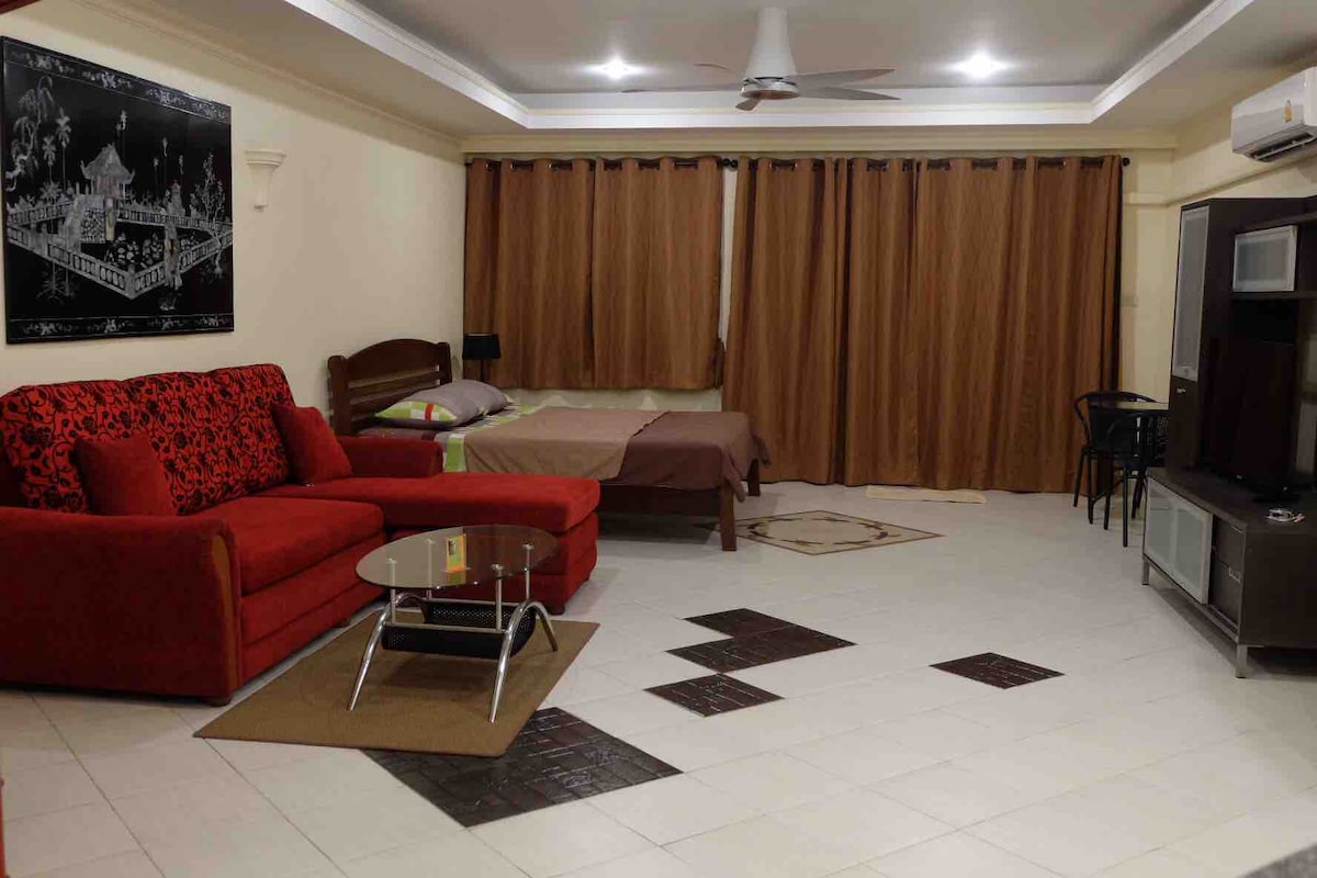 Cozy Corner Suite Apartment. Enjoy your stay in this 48 sq.m. corner apartment, spacious, bright, and fully furnished for your comfort. The apartment features 1 bedroom, a living room with a sofa bed, and everything you need to feel at home. All water and electricity are included, No extra charges! Perfect location , right in the heart of Pattaya, in the same area as Azure Hotel and Centra Hotel. You can easily reach shopping centers, restaurants, beaches, and all the main attractions .