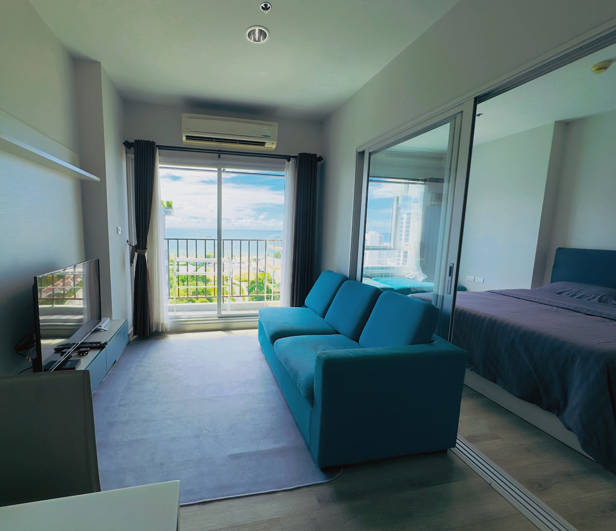 The ocean view room offers a 180-degree sea view. The surrounding area is well-equipped, close to Terminal 21 and Central Mall, and near the Big C supermarket. Songthaews (shared taxis) are available right outside the apartment, making it convenient to get anywhere. The beach is within walking distance. You can watch the sunset from your room's balcony in the evening. PS:I can recommend travel guides and show you around.