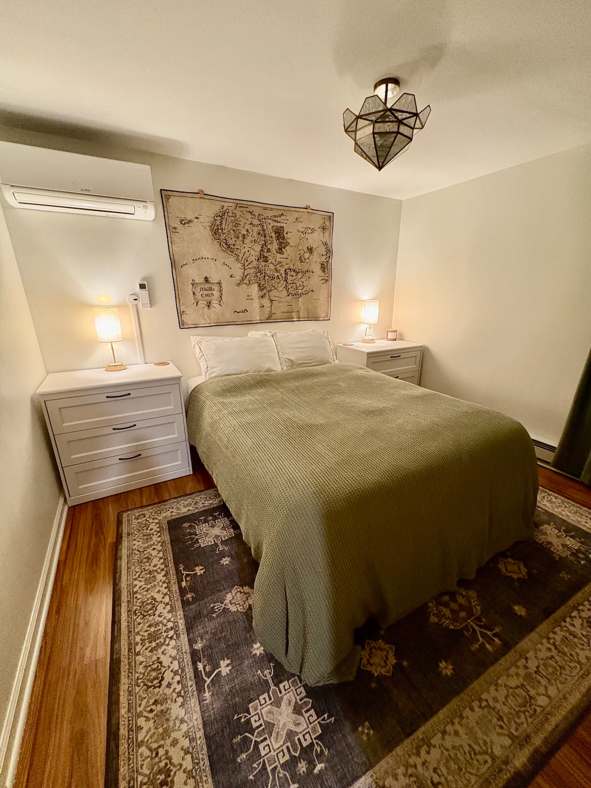 Our guest suite is located on a quiet cul-de-sac 5 blocks from the north end of campus, about a five minute walk to Pattee Library and 15 minute walk to downtown. This is the perfect place for the solo traveler or couples. The space includes a private entrance, one bedroom with a custom cherry desk space, wifi, large living area including a high top table with two chairs and a full bathroom.