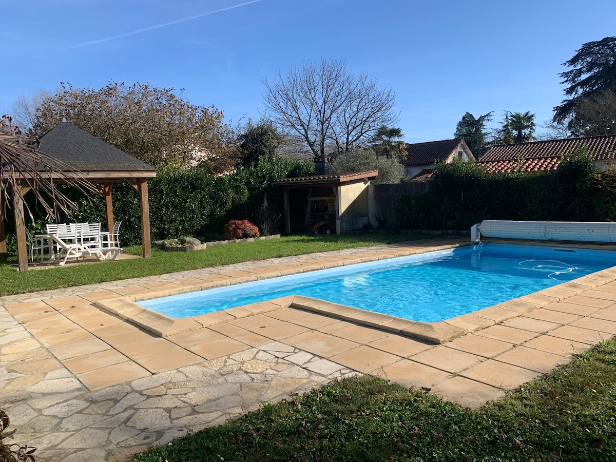 Appt indépendant au 1er étage d'une maison située sur un terrain arboré en plein centre ville. Stationnement facile et gratuit dans la rue (toujours de la place) Espace jardin, barbecue... 10 minutes à pied du bd des Pyrénées. 80 m2, 2 chambres, 1ere: un lit de 160/200 et une banquette convertible. 2eme: 1 lit de 160/200 et un autre de 140/200.