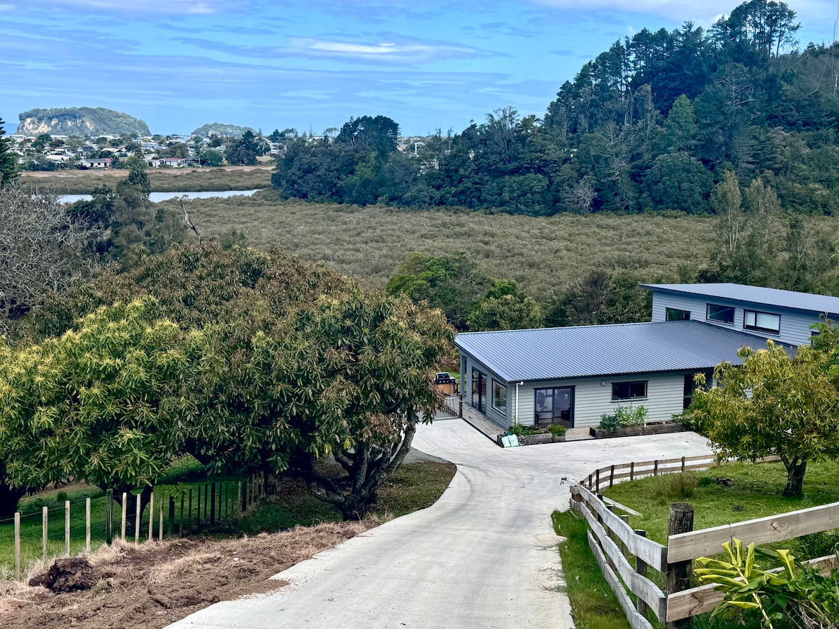 Drive down a country Rd through a vista of ferns over a ford up a country drive way to a rustic home with amazing Harbour views from Mt Maunganui to Matakana Island. Relax in Spa looking out to the ocean, don’t be surprised if a Tui, Kereru or cheeky fantail fly through to visit. BBQ on the deck listening to Morepork call or cook in the modern kitchen with truly ‘breathtaking’ views. Swimming pool, water features, decking for relaxing & privacy. This property feels like you are away from it