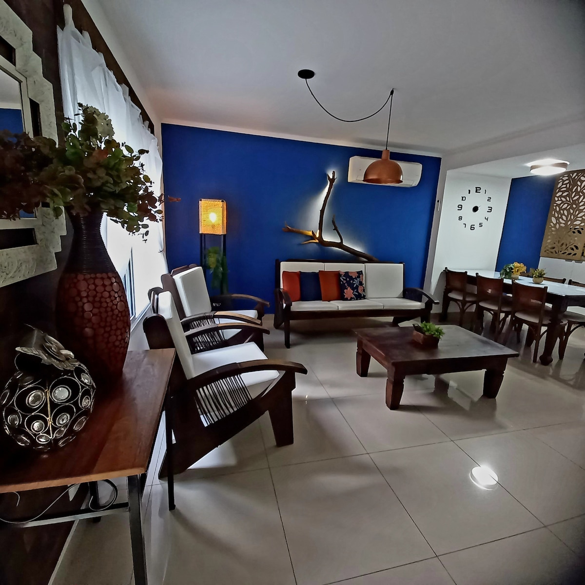 Feet in the sand, spacious and complete! It has a queen bed, a quantum mattress bed, a garden, a pool, a hammock, local art (Cartito), and much more for you to have amazing moments! There is exclusive 300MB fiber optic Wi-Fi internet for the house. The house is fully furnished to comfortably accommodate up to 12 people. Come visit us, it will be a pleasure to host you! :)