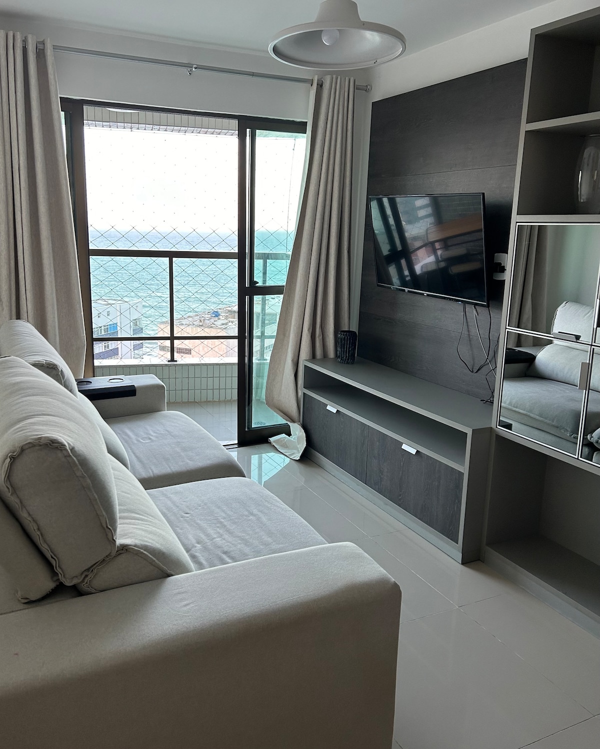 (SOMOS FLEXÍVEIS) BEIRA MAR - com 5m de janela pro mar e perto de absolutamente todo tipo de comércio e serviços que possa imaginar. NÃO tem garagem PERMITIDO GRATUITAMENTE estacionar nas ruas do quarteirão todo dia e noite TEMOS NO FLAT SEM CUSTO: Shampoo Condicionador Sabonete líquido Cotonete Absorvente Desodorante Algodão Acetona Café Açúcar Sal A diária hospeda até 3 pessoas