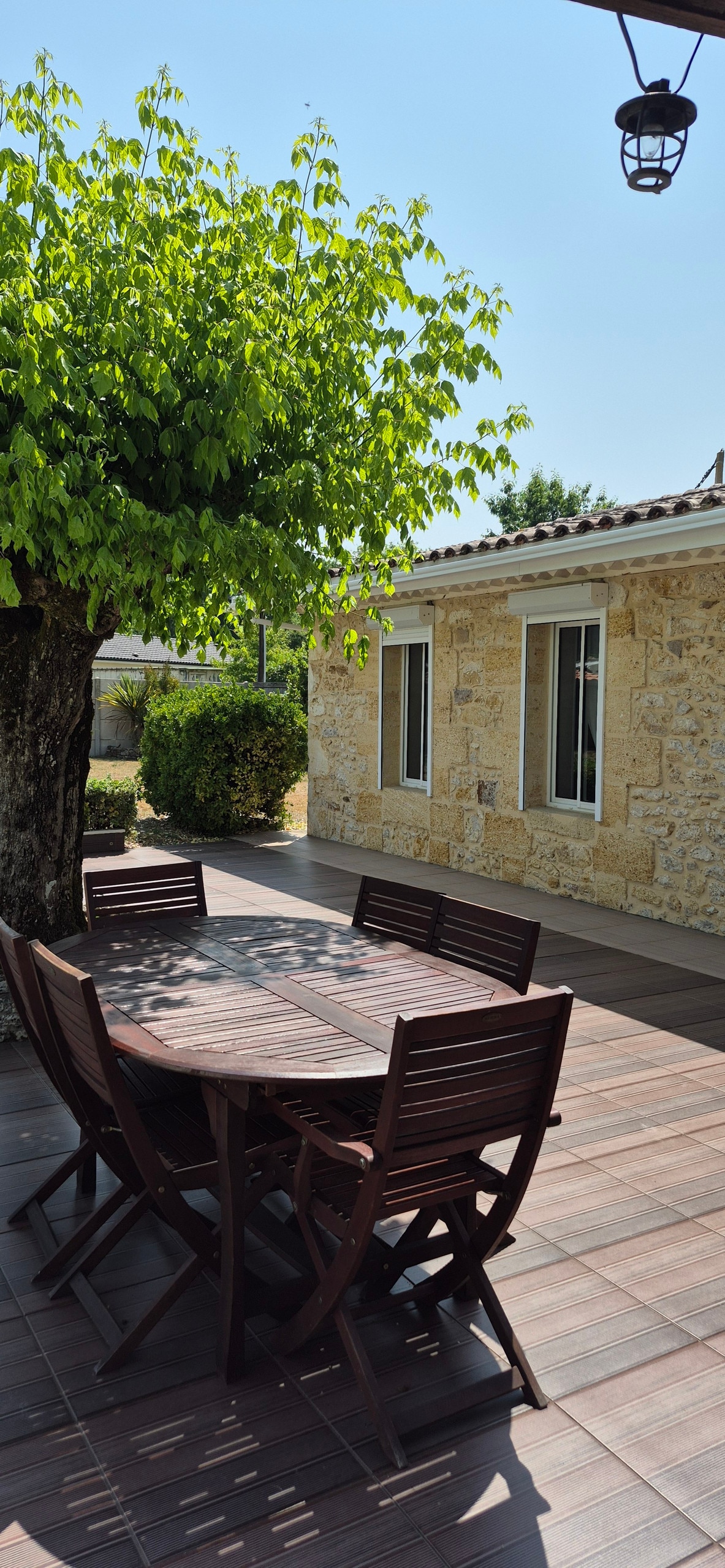 Maison à étage au cœur du vignoble medocain, à 500 mètres du chateau Mouton Rotschild. Pouvant accueillir 6 voyageurs. Avec une piscine , un barbecue extérieur, un parking privé ainsi qu'une cheminée et la télévision. Internet et WiFi incluse. Boulangerie a 2mn a pieds , tous commerces a 3mn en voiture . petit Havre de paix . à l étage, 2 chambres double avec salle de bain et toilettes. rez de chaussé avec véranda, salon , chambre double avec s de bain et toilettes