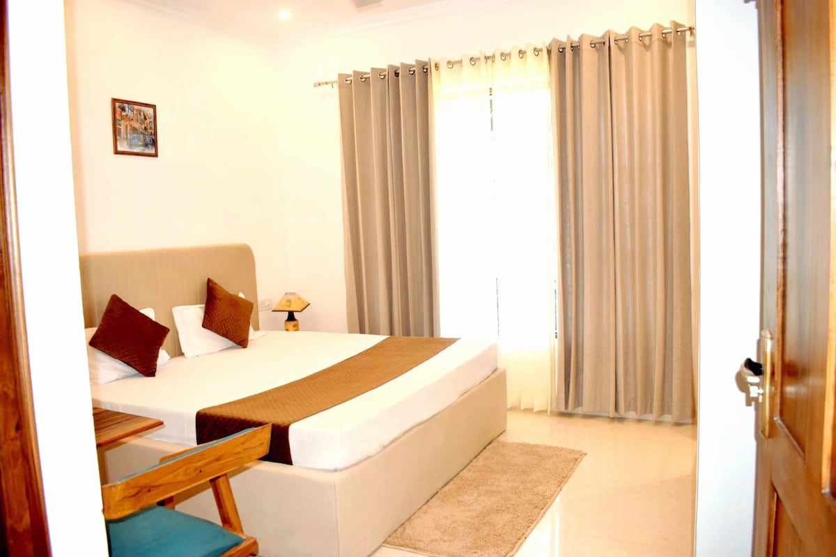 Best Homestay for small family or business stay in Dehradun! Our first-floor suite offers a blend of comfort and character with a king bed, AC, smart TV, Wi-Fi and work desk. Enjoy Mussoorie hill views from the terrace, light cooking in the kitchenette or quiet time in the garden. Hosted by a retired Colonel and former Principal, the home ensures a safe, cultured and family-friendly stay. Close to FRI, ONGC, IHM and Doon School, it’s ideal for families, professionals and solo travelers.