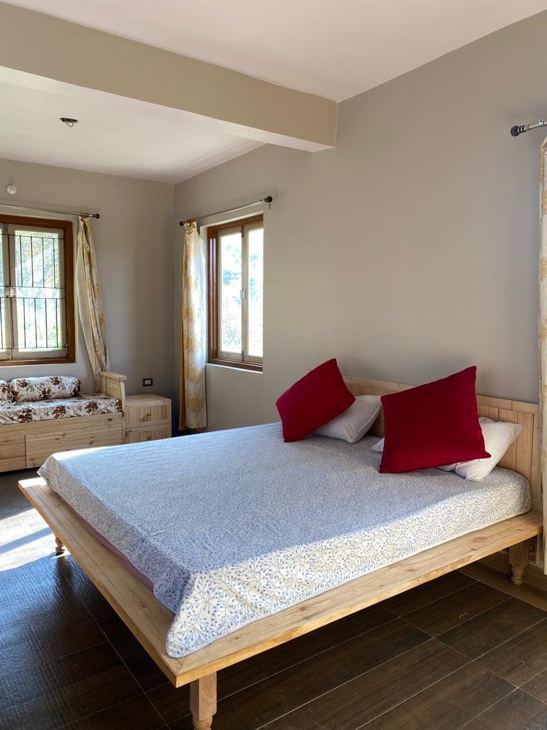 Escape to Shambhala, a hilltop getaway in the beautiful hills of Uttarakhand. 40 minutes away from Rishikesh and surrounded by stunning mountain views, this peaceful retreat is the perfect place for a restful getaway. Family Cottage is a spacious two-storey cottage with a kitchen and balcony suitable for couples, families and groups of friends. Perfect for a peaceful getaway with family or friends. Experience the beauty of Rishikesh and rejuvenate your mind, body, and soul at Shambhala.