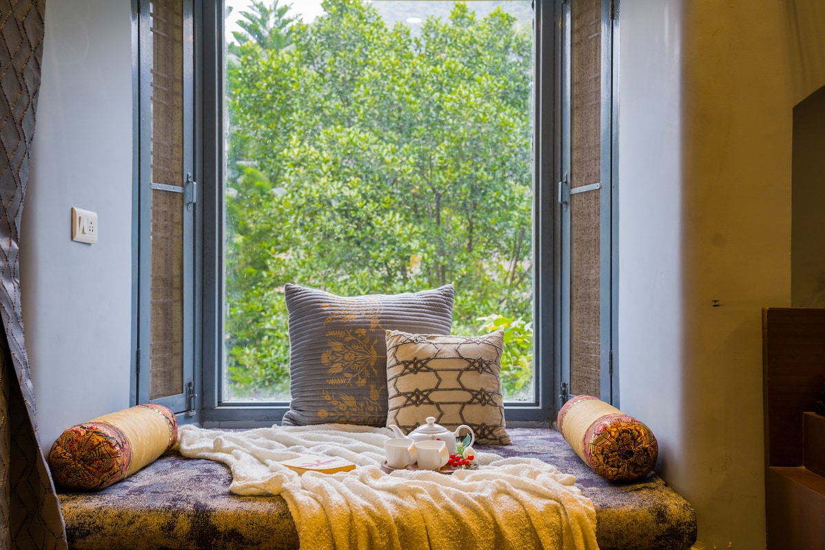 Enjoy the elegance of a by-gone era while staying at Chateau de Tatli, perched on a hilltop on the outskirts of Doon Valley. This place features beautifully decorated rooms, a terrace garden with a plunge pool cum jacuzzi overlooking the valley of Dehra & river Song. It has an in-house restaurant which serves delicious snacks, live-bbq & meals. Get submersed with Nature, Treks & Trails even when the city is at just 10 mins drive & tourist places like Rishikesh & Mussoorie are at 40 mins.