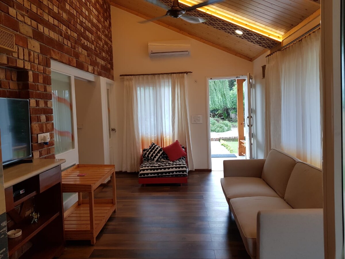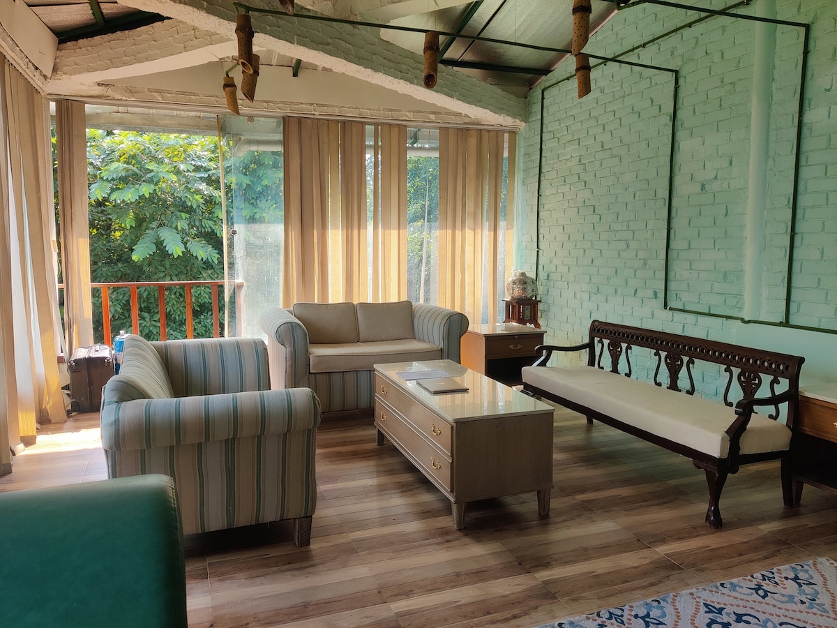 Luxury B&B Redefined *************************** View All Cottages - Search - Chateau de Tatli *************************** ** Breakfast Included ** This is our premium Suite Cottage Overlooking the Song river, the International Cricket Stadium and majestic Himalayan range. Get submersed with Nature (various birds & butterflies keep visiting the property, also if you are lucky then Fireflies will light up the area) FOC: Stargaze Fresh Air Trek | Walk around Meditate