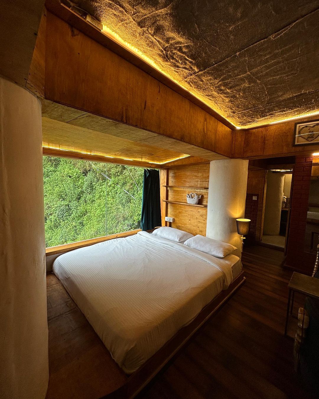 Bright, cozy room with a bed, warm wooden interiors, and plenty of natural light. Step onto the private balcony to enjoy peaceful mountain views—perfect for relaxing mornings or unwinding at sunset.