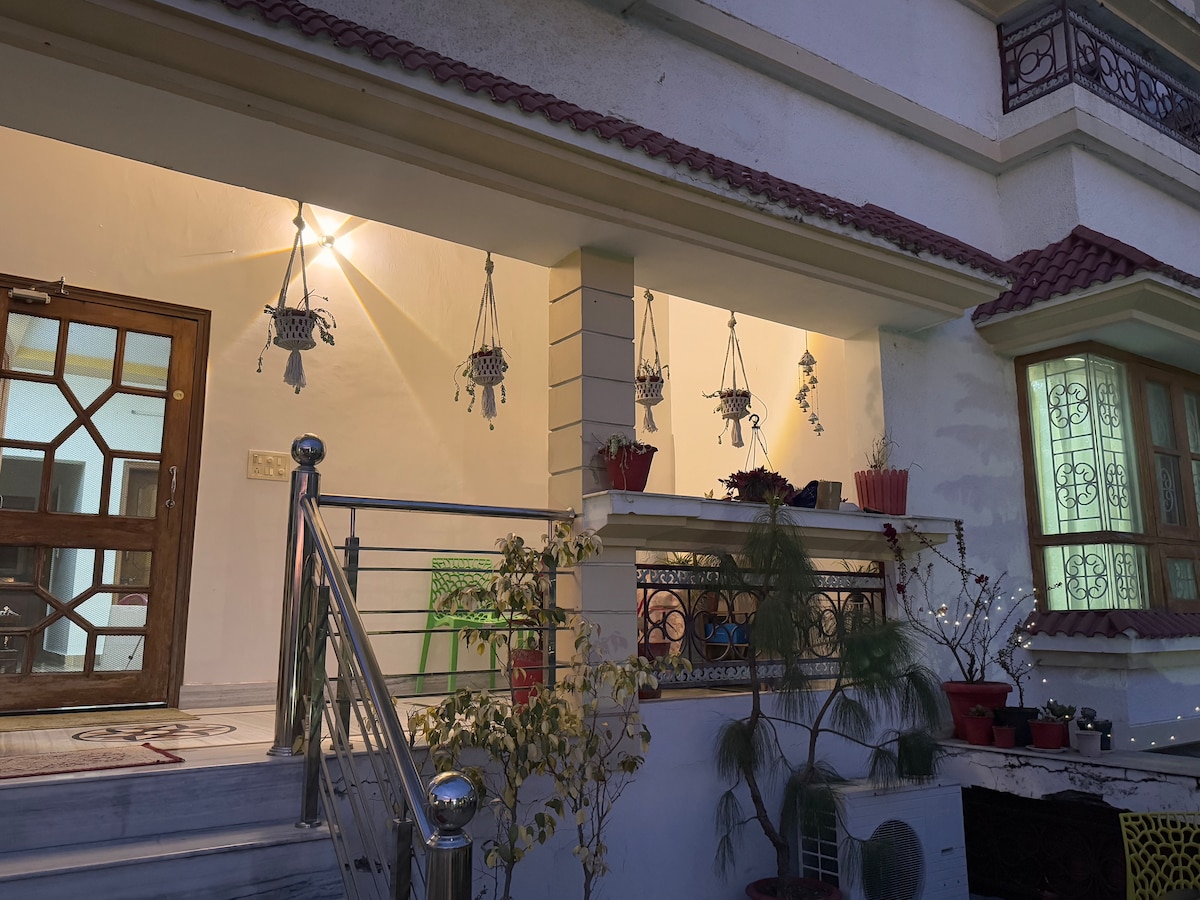 Lal Kothi is chef Sameer Sewak & his family's home in countryside Dehradun. It is surrounded table top views of Mussoorie hills, Tons river, Sal forests. Guests get the 2nd floor with a private access. The space includes 2 bedrooms, a kitchen/lounge, 2 terraces & balconies. Included in your stay is a complimentary breakfast. Guests get to order vegetarian & non-vegetarian delicacies for lunch & dinner from the dehradun famous Awadhi cuisine menu designed by Chef Sameer & his mother Swapna.