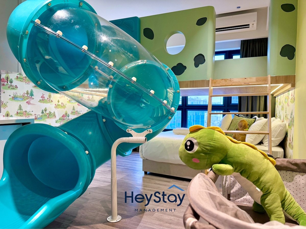 Wild Wild Wonderland, a kid-friendly animal-themed apartment-style accommodation where kids learn about the animals, zoom past the slide into a ball pit and have independent play while parents sit back, relax and enjoy the holiday. We are located in Bukit Bintang, Kuala Lumpur and close to more than 40 attractions, with a 5 to 10-minute walk to: Pavilion KL TRX The Exchange Times Square Bintang Walk Hop-on-Hop-off Bus Stop Our unit is sanitized after every stay for the comfort of your family.