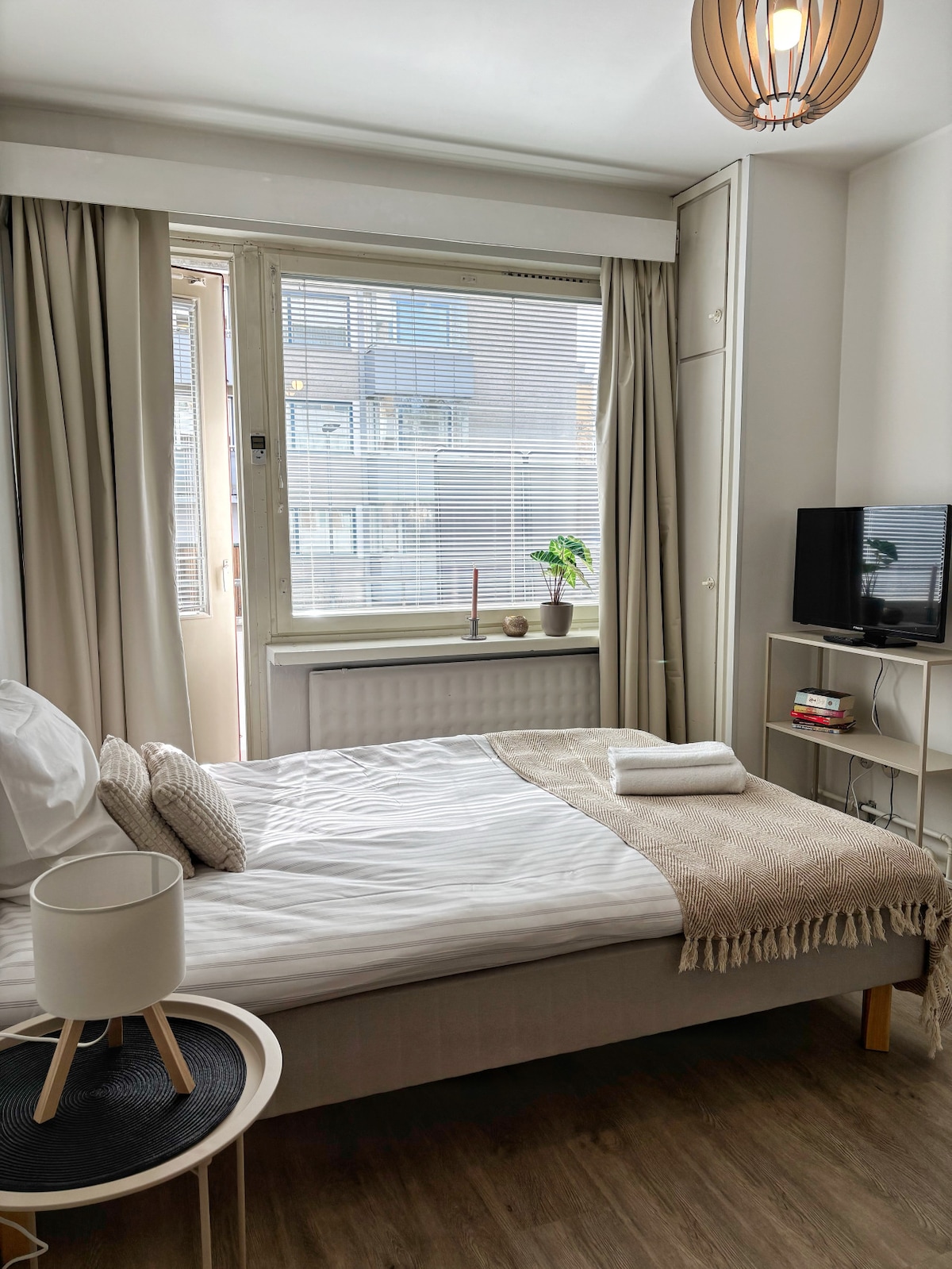Moderni ja tilava kaksio (48m2) huippusijainnilla ydinkeskustassa. Keskustan palvelut ympärillä. Vastapäätä S-Market, joka auki joka päivä klo 23 saakka. Matkakeskukselta vain 5 minuutin kävely. Kysy tarjous pidemmistä majoittumisista. Modern and spacious two-room apartment (48m2) with a brilliant location right in the city centre. A grocery store (open until 11pm) across the street. Just 5 min walk from train/bus station. Ask for an offer for longer stays.