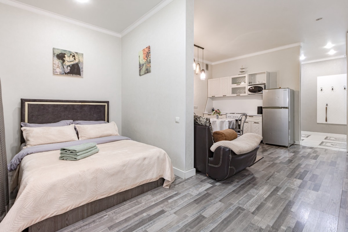 Уютная квартирка с новым качественным ремонтом и стильным дизайном находится в самом сердце города. Прекрасный вид на город. В доме где находится квартира расположен магазин Ремикс. Хозяин квартиры на связи 24 часа в сутки. В квартире идеально чисто. Качественное пастельное белье и полотенца (для рук, лица и ног). Так же квартира укомплектована одноразовыми тапочками, зубными наборами, быстрый интернет и Smart TV, на большом качественном ТВ. Уборка проводится ежедневно и качественно.