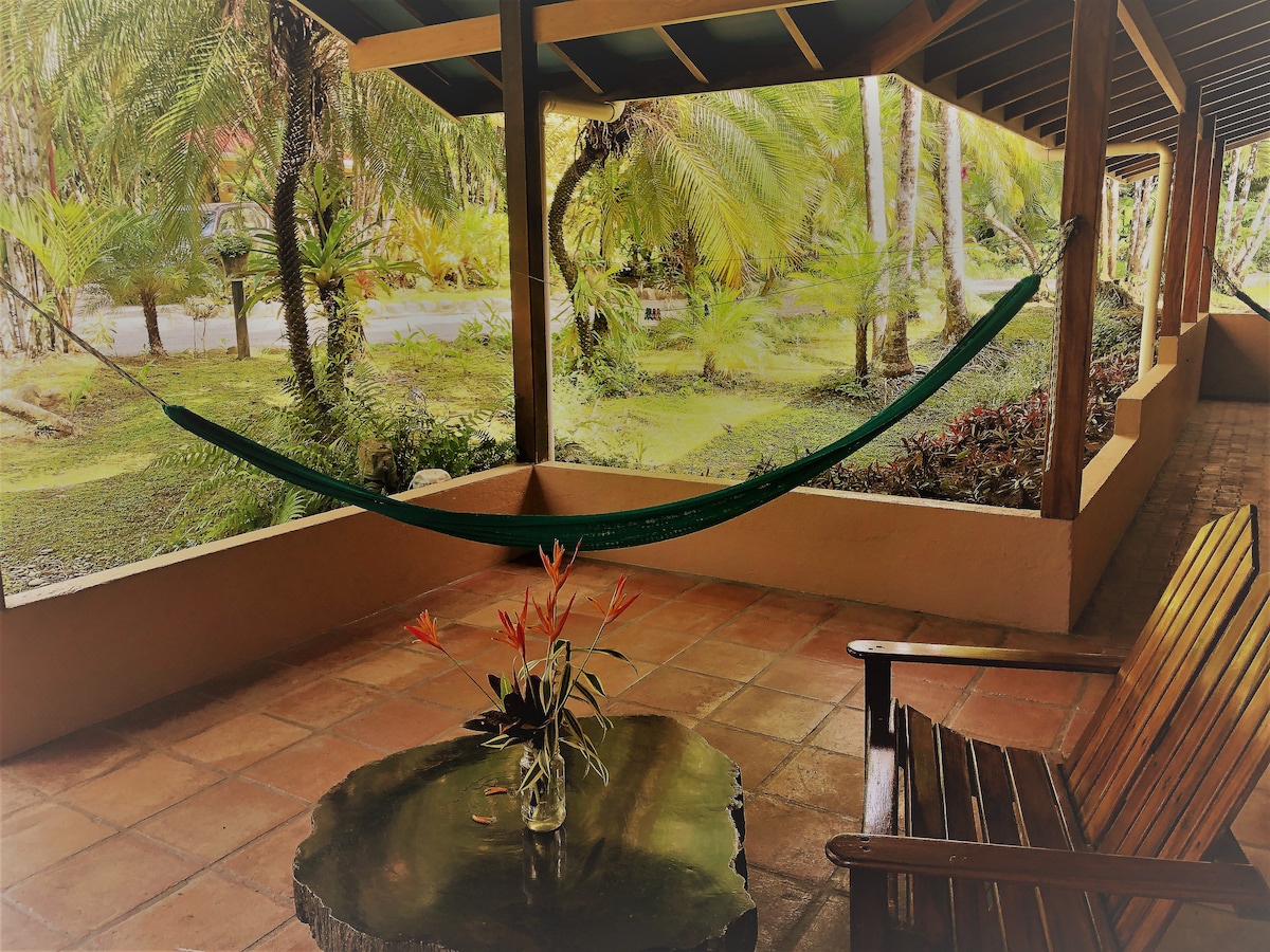 Beautiful newly renovated two bedroom, two bath Riviera house located on amazing riverside tropical gardens 200 meters from Pavones surf break. Enjoy staying at a close walking distance to surf, beach, river, restaurants and markets in downtown Pavones. Experience our amazing botanical gardens full of tropical fruits, palms, flowers and wildlife. And of course a guaranteed smile as you float down the pristine Rio Claro from our private trail down to the surf.