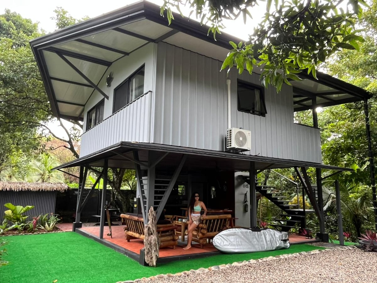 Enjoy a simple yet comfortable new partial container home. Walk to the longest warm water left in the world. You can also walk to town with all of the restaurants and super markets. Relax on the deck with morning coffee while you look at the ocean. Enjoy the rooftop deck for great sunset view. The home is brand new and has ocean view, hot water, and air conditioning. The home is also equipped with full kitchen of everything. Direct message me for Costa Rican Specials.