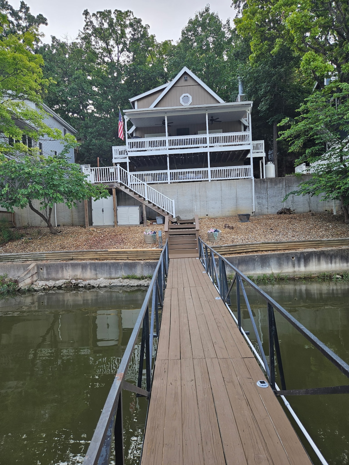 Entire lake house ready for your next lake retreat with family or friends. Spacious living area including outdoor deck space with a private dock and kayaks for use! Watch the sunset on the dock while grilling out or next to the gas fire pit. Cozy up next to the wood burning fireplace. **NEW LOWE Tritoon BOAT RENTAL option or space to side dock your boat. Close to the strip, grocery stores, and restaurants. Mini golf, go-karts, and a winery are also nearby. Perfect for a weekend or long get away.