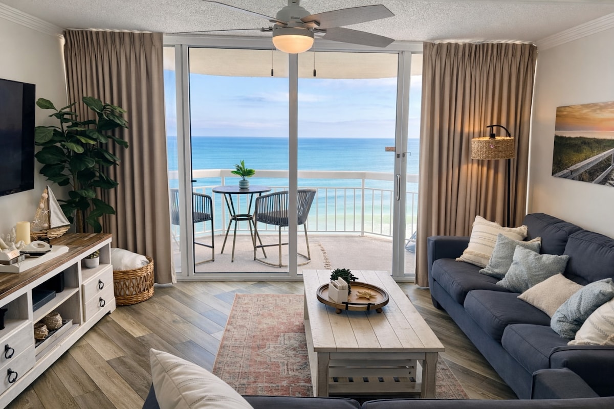 Relax with sweeping ocean views and an easygoing space designed to help you unwind. Enjoy your private balcony, simple comforts, and Seawatch’s pools just steps away. • 🌊 Oceanfront views that instantly slow you down • 🌅 Private balcony for morning coffee and quiet evenings • 🛏 Comfortable king bed with soft linens for restful, uninterrupted sleep • 🛋 Relaxed living space that feels easy, open, and uncluttered • 🍳 Fully equipped kitchen for simple meals and stress-free mornings • 📺 Smart