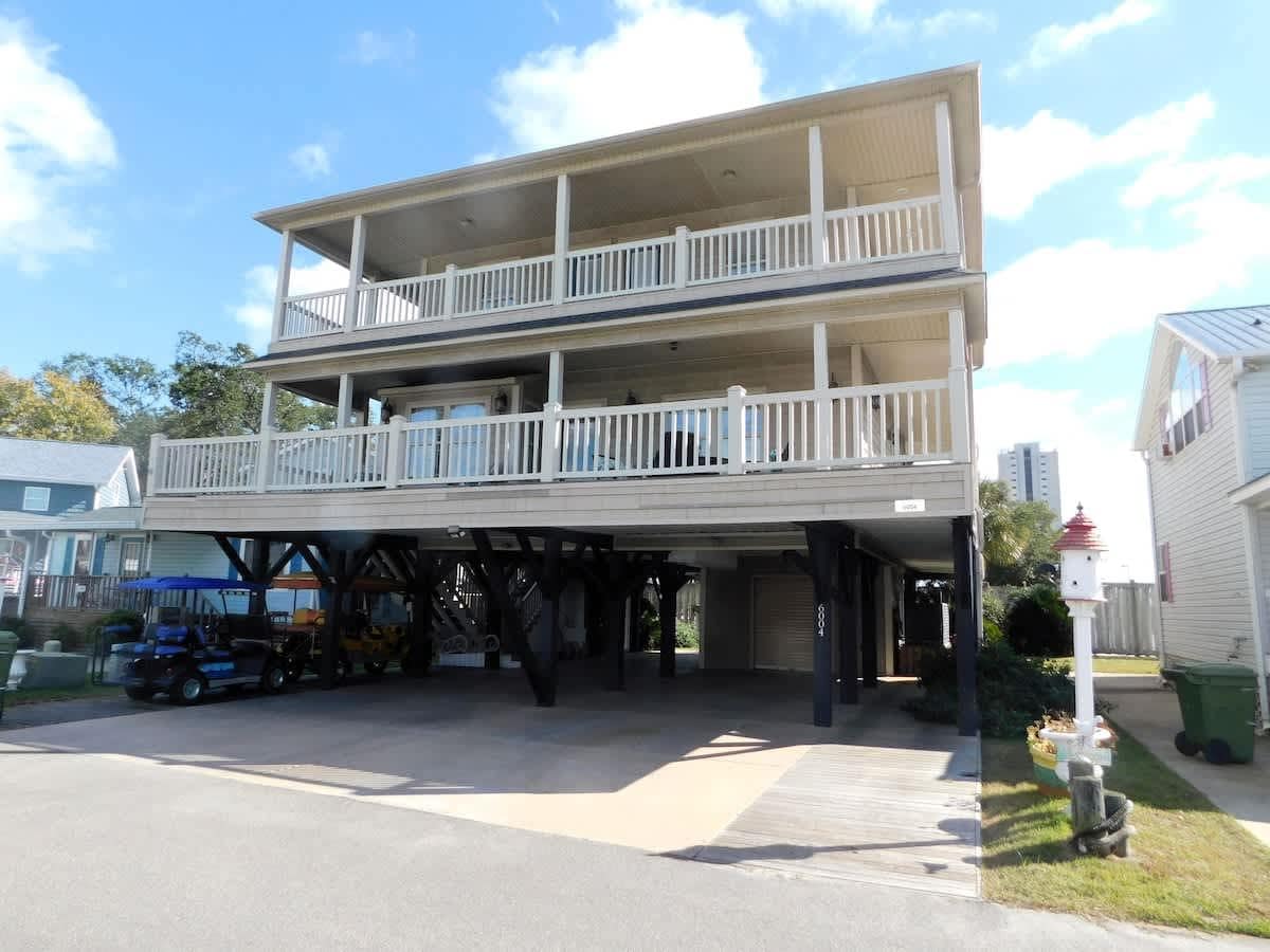 Family fun for all ages, located near the beach and intercoastal waterway. Safe central location with colorful artsy fun! New 2026 pinball. Lavish modern décor with comfortable King & Queen bedrooms. A short drive to family favorite Cherry Grove Beach. High tech sound & lighting systems, Dolby Atmos, LG OLED TVs, streaming & PS5 game system, arcade, foosball and new pinball machines. Tesla car charger. Full featured gourmet kitchen, Weber charcoal grill, and fire pit. Ready for play!