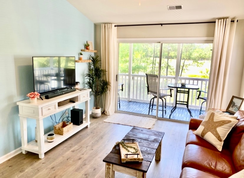 PAWLEYS ISLAND TRUE BLUE CONDO - 2-bed, 2-bath condo - 3rd floor unit located on True Blue Golf Course - Private screened-in porch overlooking the 17th hole - Great location close to 5 golf courses and an 8min drive to the beach - Suitable for remote work with fast WiFi (500 mbps) - In-unit washer/dryer and comfy casper mattress - Self check-in