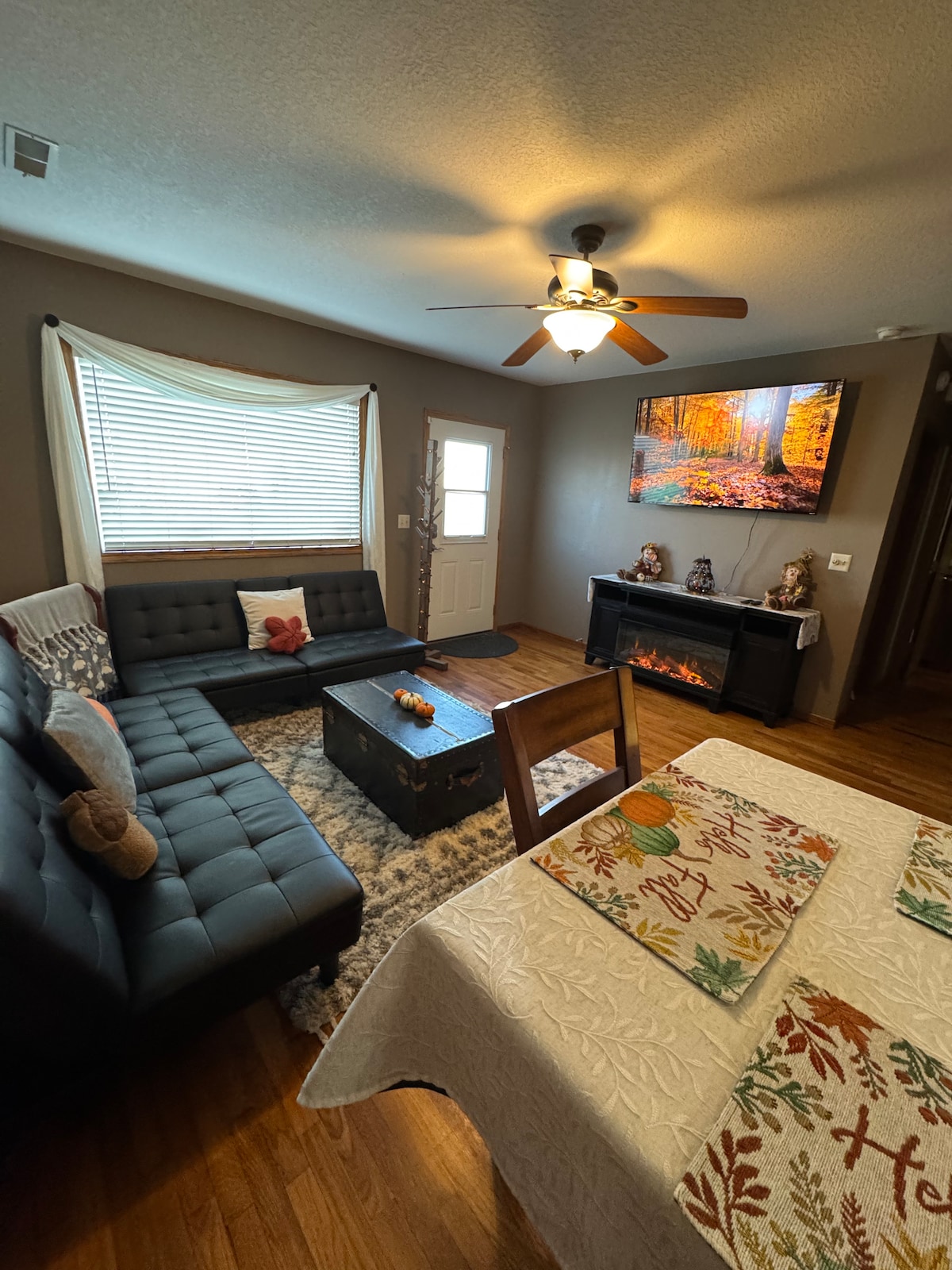Your home away from home! Spacious 2 bedroom 1 bath home in the center of town. Fully equipped kitchen with all essential items you need to cook. Dining room table seats 6 with a coffee bar in the dining area. Living room has a 50 inch tv. This is a perfect spot if you are coming in to town for work or to relax. The home has a smart lock on the back door for entry. Parking can be found through the alley with a 2 car carport.