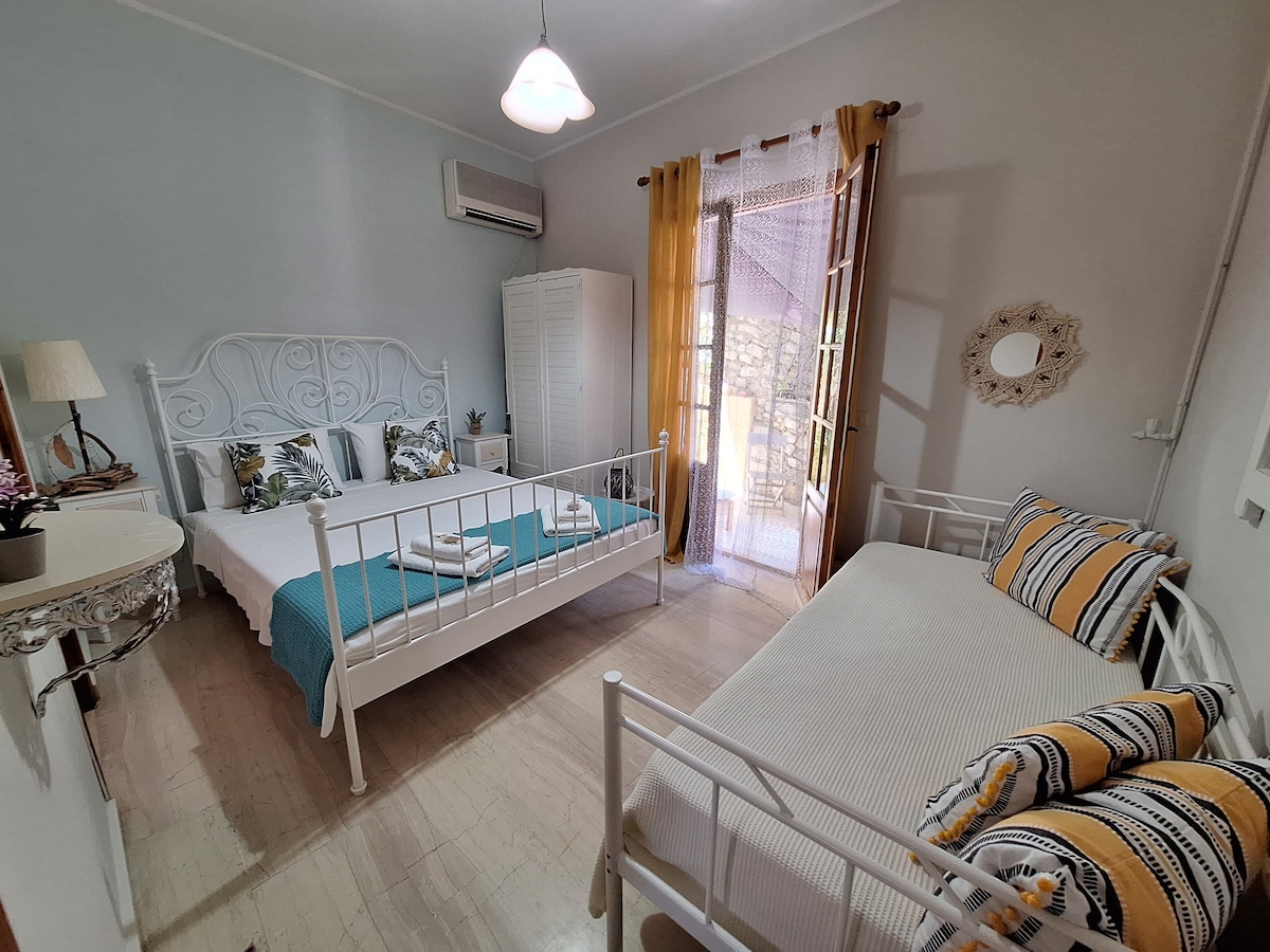 Fereniki's place is a lovely ground floor apartment situated in Gaios, the centre of Paxos; it welcomes couples, solo travellers, friends or families with or without pets from all over the world. It is located 500 meters from the centre of Gaios (about 8-10minutes uphill walk/ 1minute by car) & around 1,5 km from the main port (15-20minutes uphill walk/ 3minutes by car).